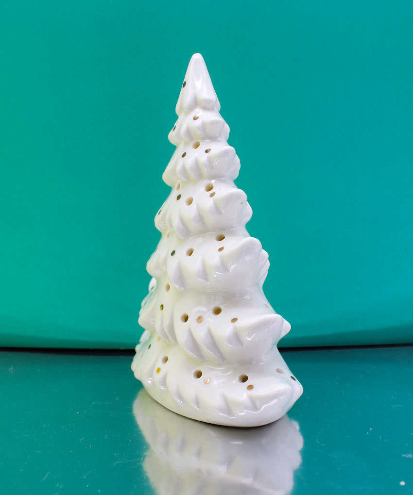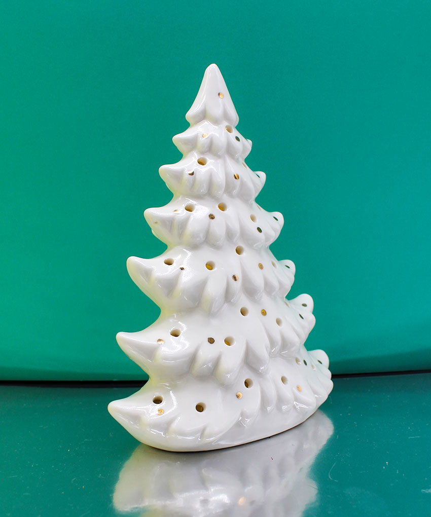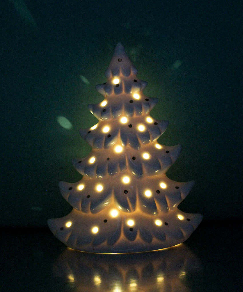 Albero di Natale in porcellana con luce LED 13×7×h.17,5 cm