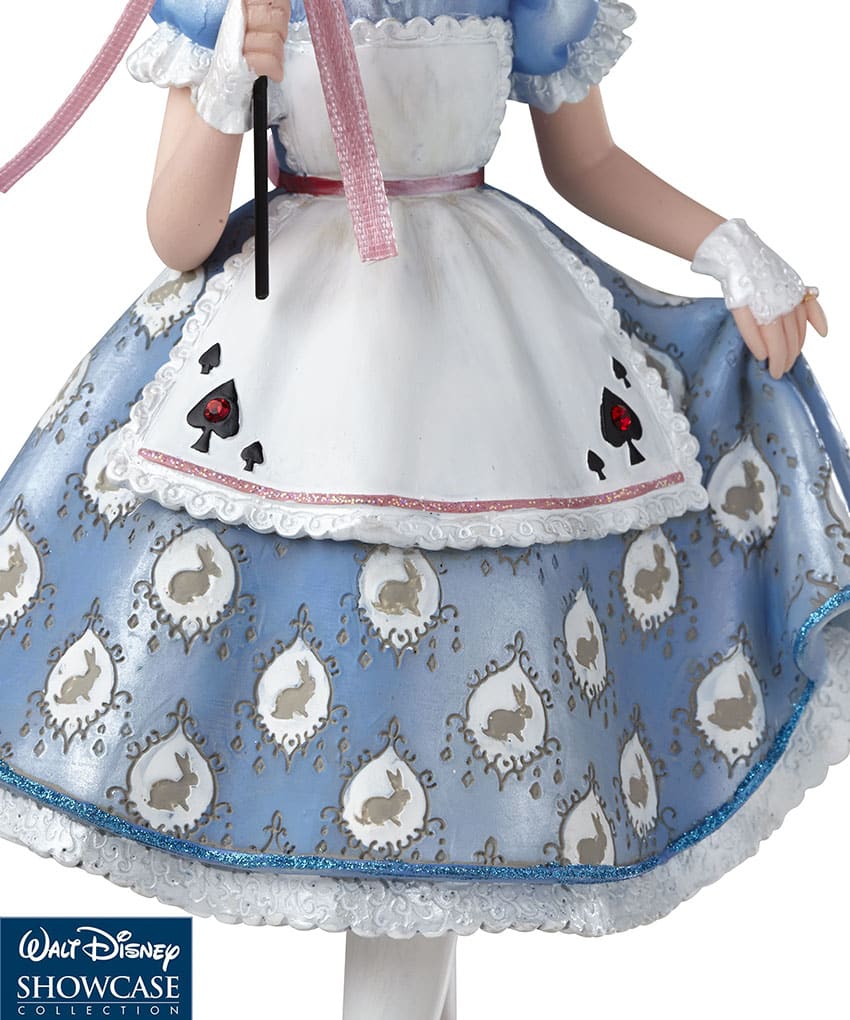 Alice si unisce al ballo in maschera Disney Haute Couture. Motivi e icone del film Alice nel paese delle meraviglie appaiono sul suo iconico abito blu opalescente. Disney Showcase Haute Couture è una splendida collezione ispirata alle principesse e ai cattivi che dominano il mondo Disney impreziosita dall’alta moda. Ogni figurina è realizzata in resina dipinta a mano e ci si possono aspettare lievi variazioni di colore, il che rende ogni pezzo unico. Confezionato in una confezione regalo.