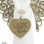 Angelo stilizzato con Ali e Cuore in metallo con incisione “Nulla può sostituire l’Amore di una Mamma” , applicazione di strass tra i capelli e nel cuore