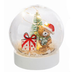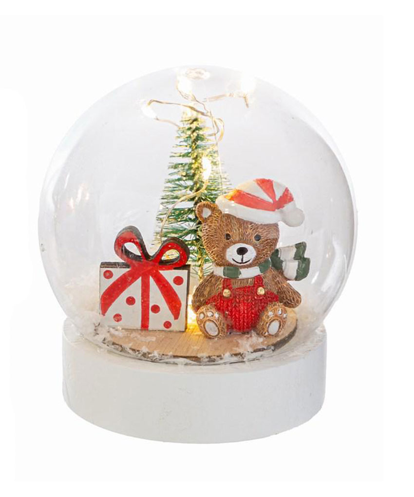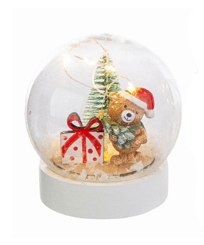 Ampolla Natalizia Orsetto con Luce LED – 2 Assortimenti diam.9×10 cm