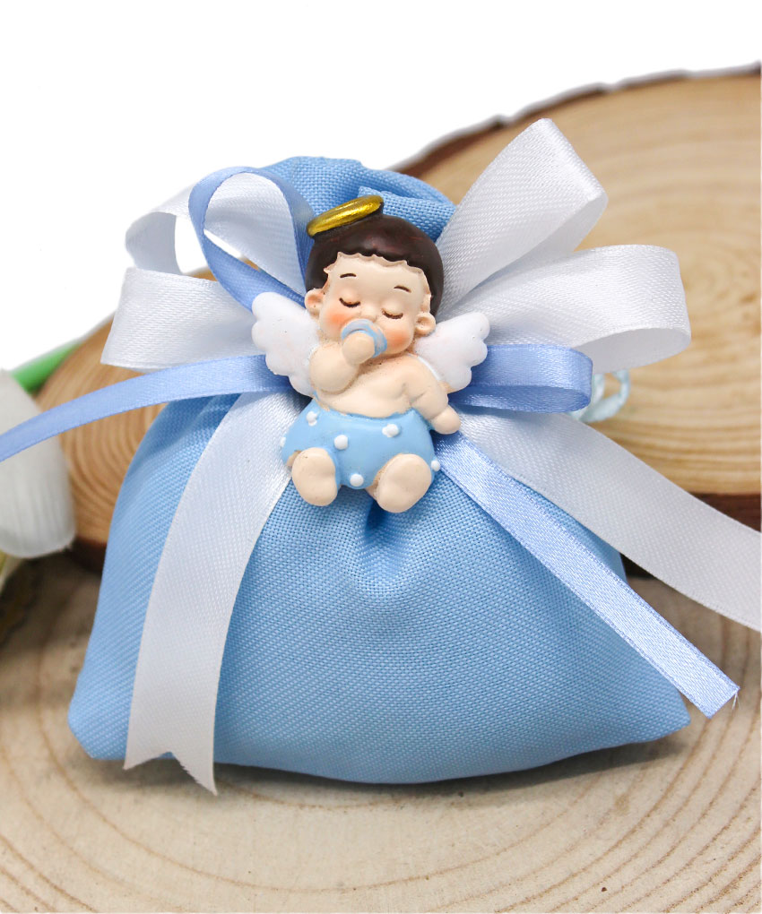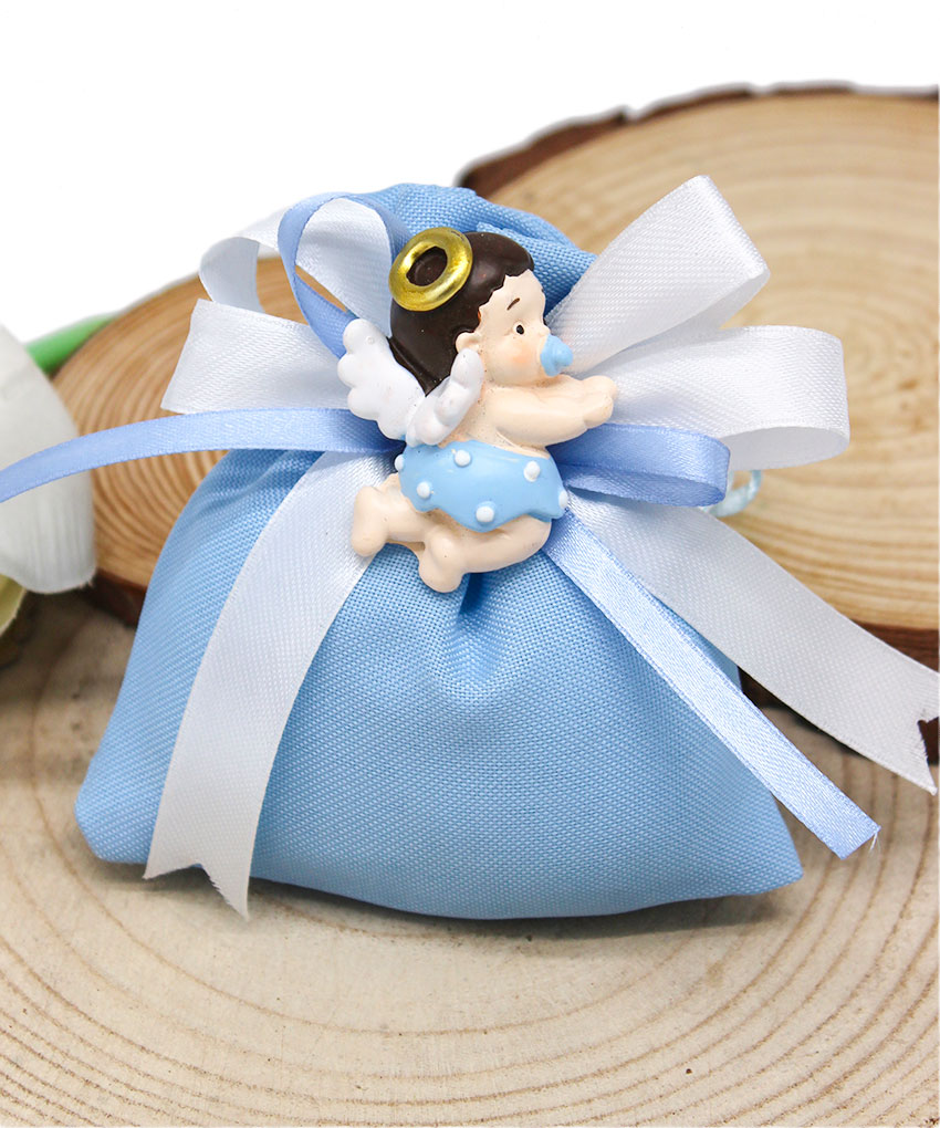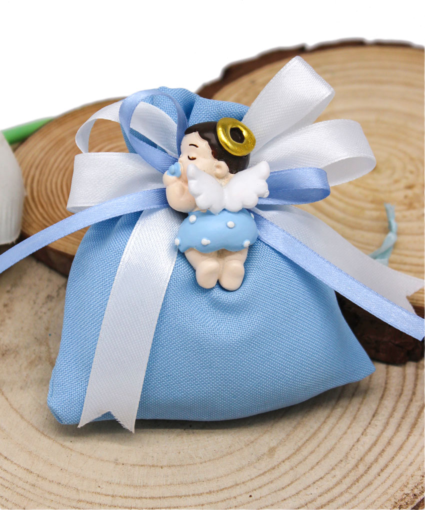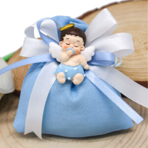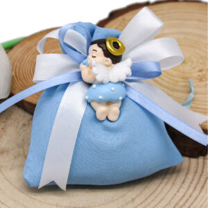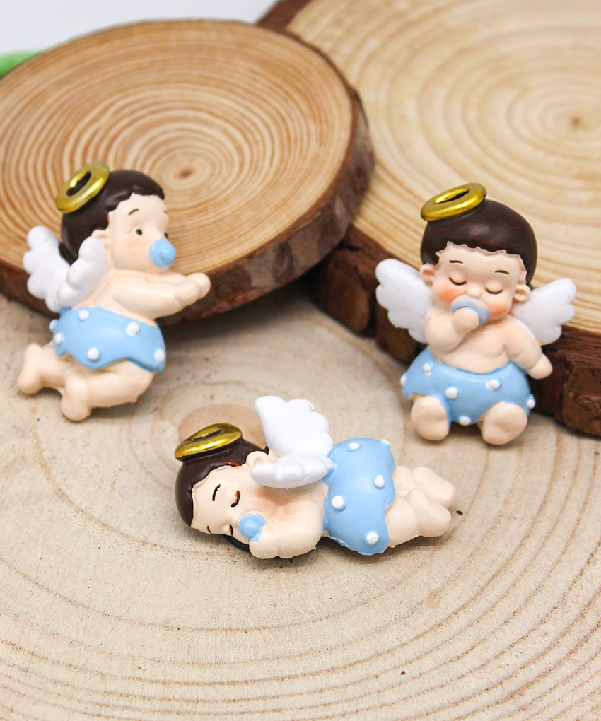 Angioletto Calamita Celeste – 3 Modelli Assortiti – Bomboniera Nascita e Battesimo – 5 cm