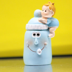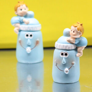 Statuina biberon celeste da 6 cm, ideale come bomboniera per nascita e battesimo. Realizzata in resina con dettagli curati. La confezione non è inclusa nel prezzo e può essere aggiunta nei passaggi successivi all’ordine.