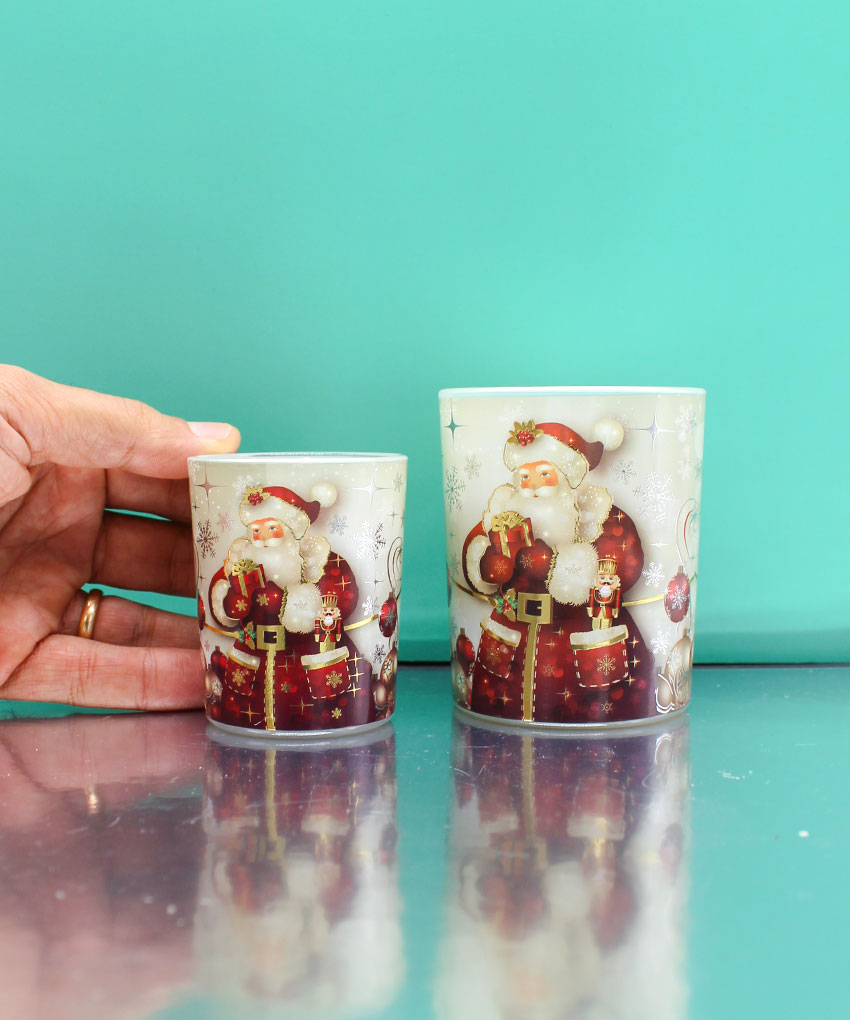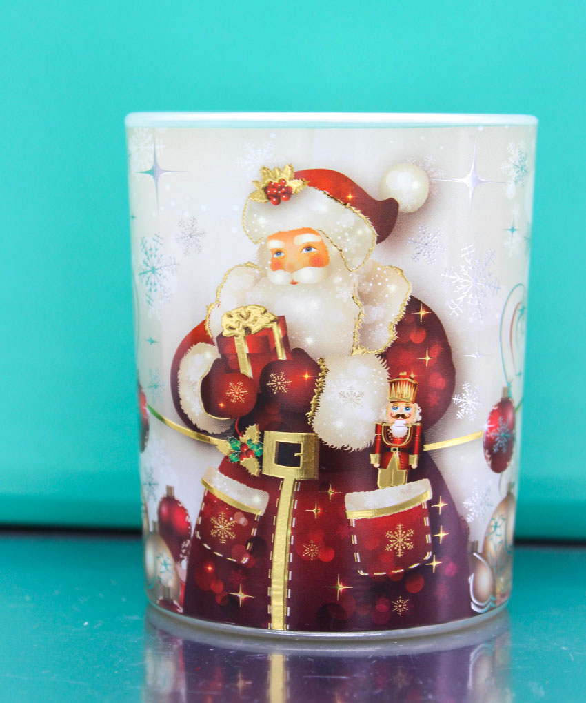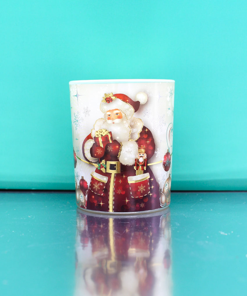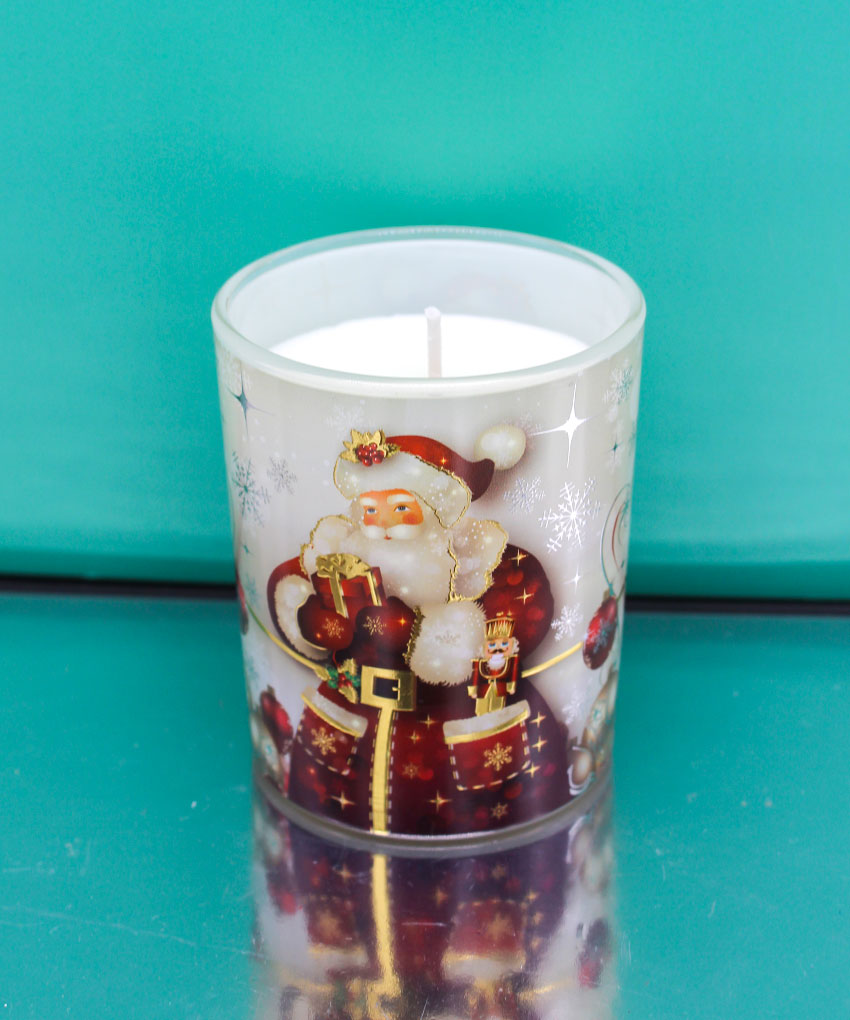 - Tag: Candela Natale, Babbo Natale Bianco, Candela Profumata Vaniglia, Bicchiere decorato Natale, Idea regalo natalizia