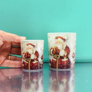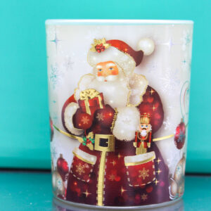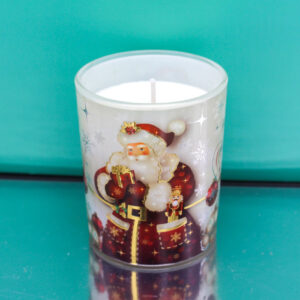 - Titolo Prodotto: Bicchiere con Candela Profumata Babbo Natale Bianco – Vaniglia
