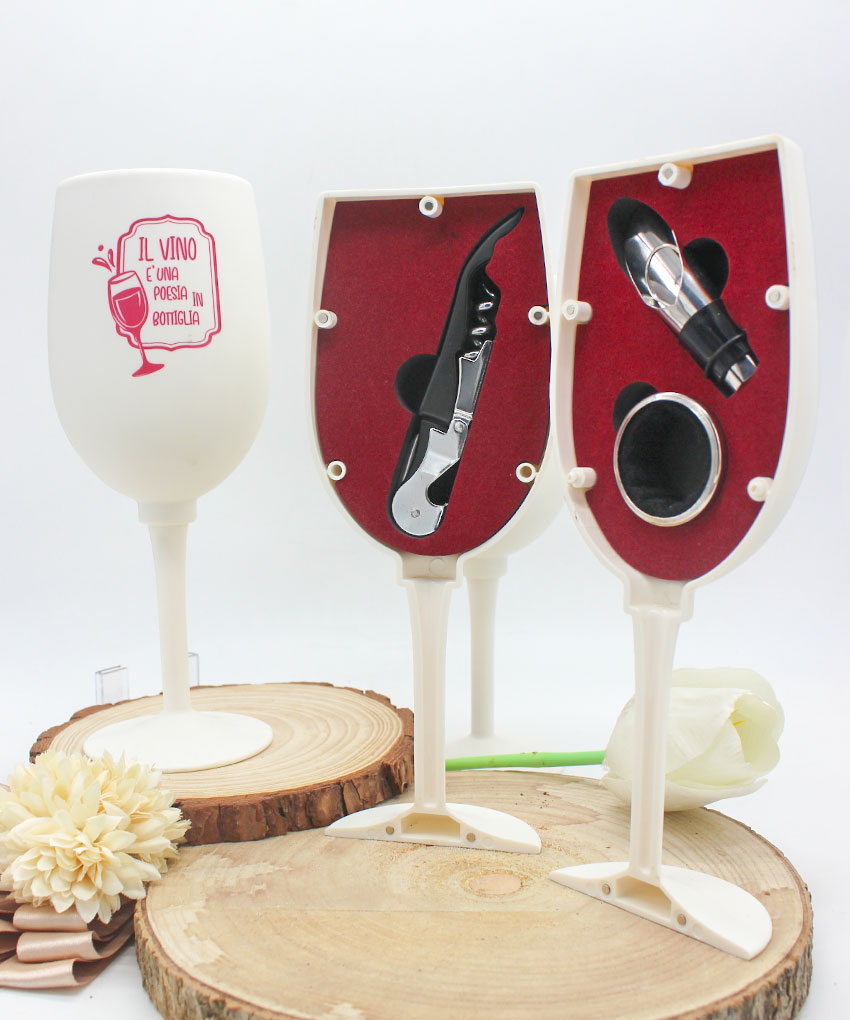 Bomboniera Accessori 3 Pz Vino in Calice Completo di Confezione – MC Bomboniere