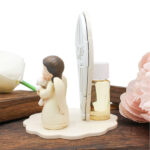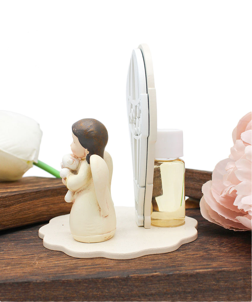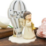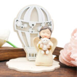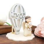 Questa bomboniera rappresenta l’innocenza dell’infanzia e la protezione degli angeli, rendendola perfetta per accompagnare momenti speciali e spirituali come il battesimo di un bambino o la prima comunione. La forma a mongolfiera evoca leggerezza, sogni e speranza per il futuro.