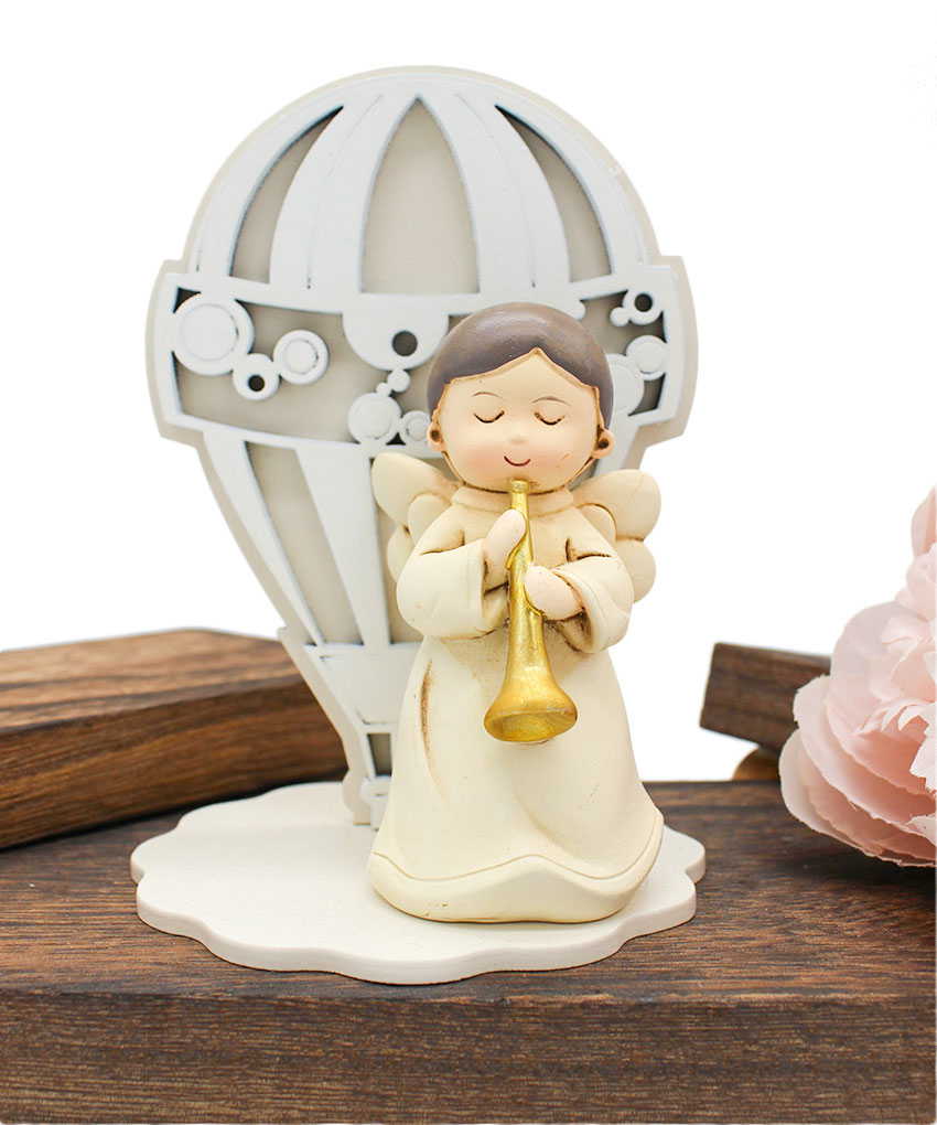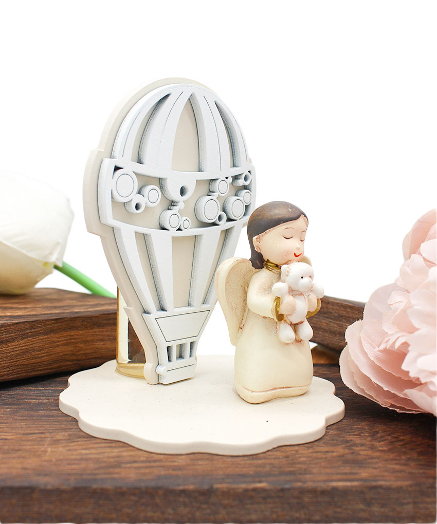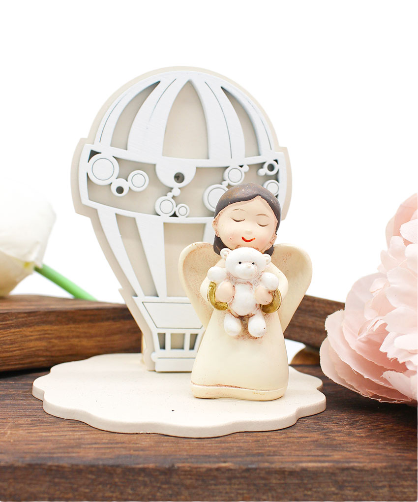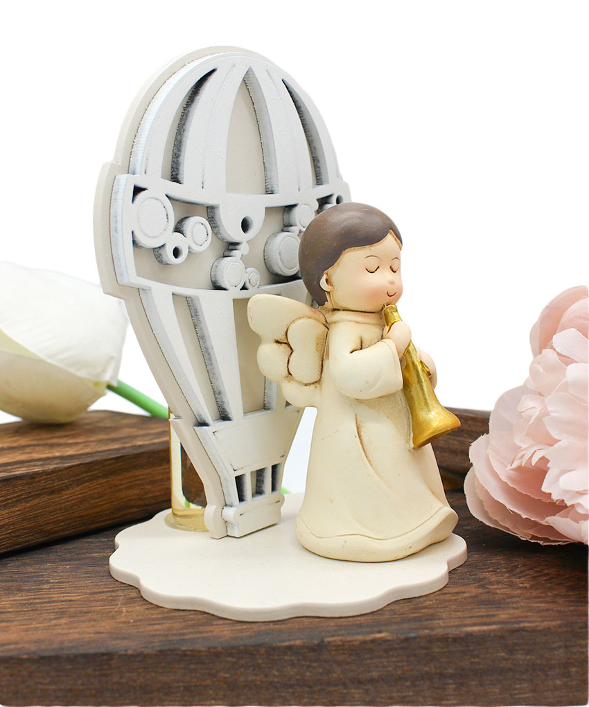 Bomboniera Angioletto su Mongolfiera in Legno e Resina – 2 Misure Disponibili