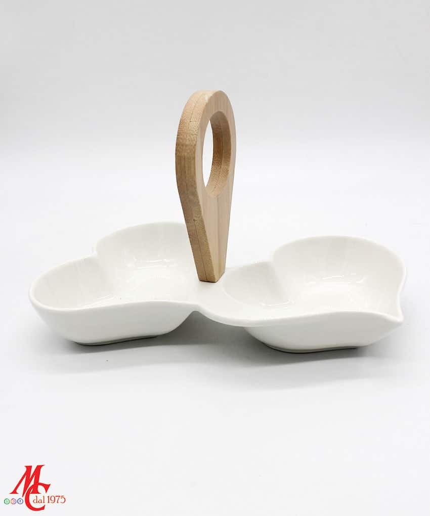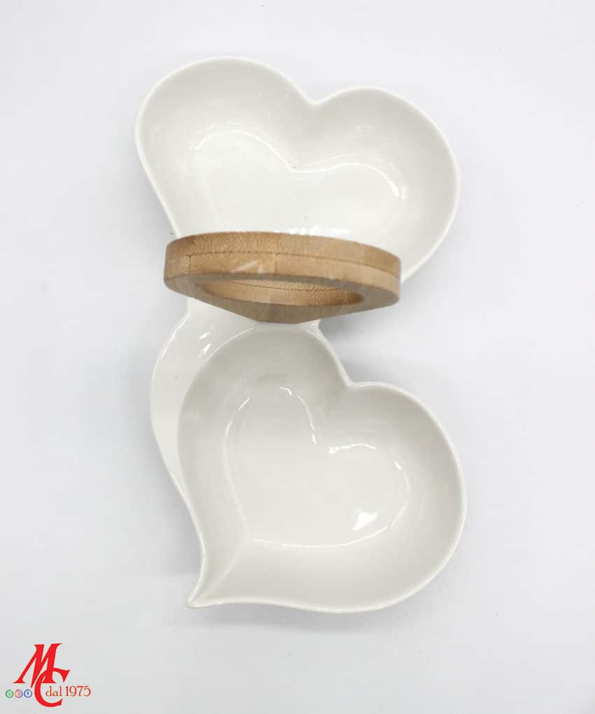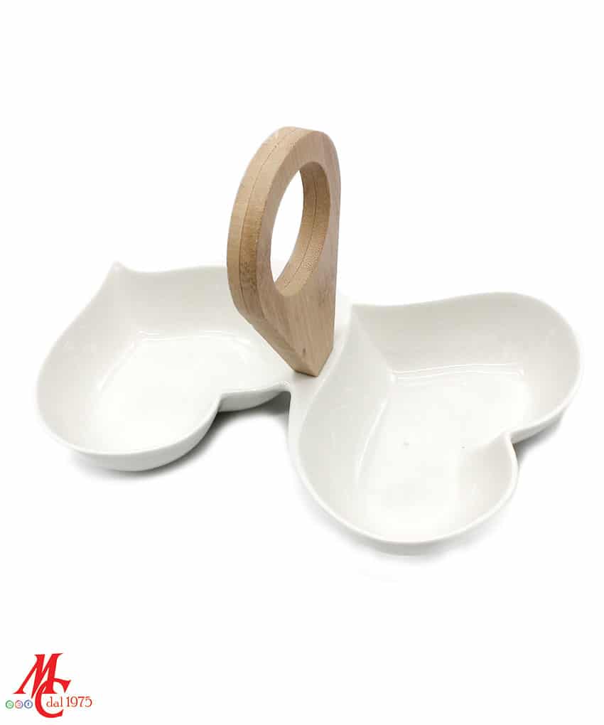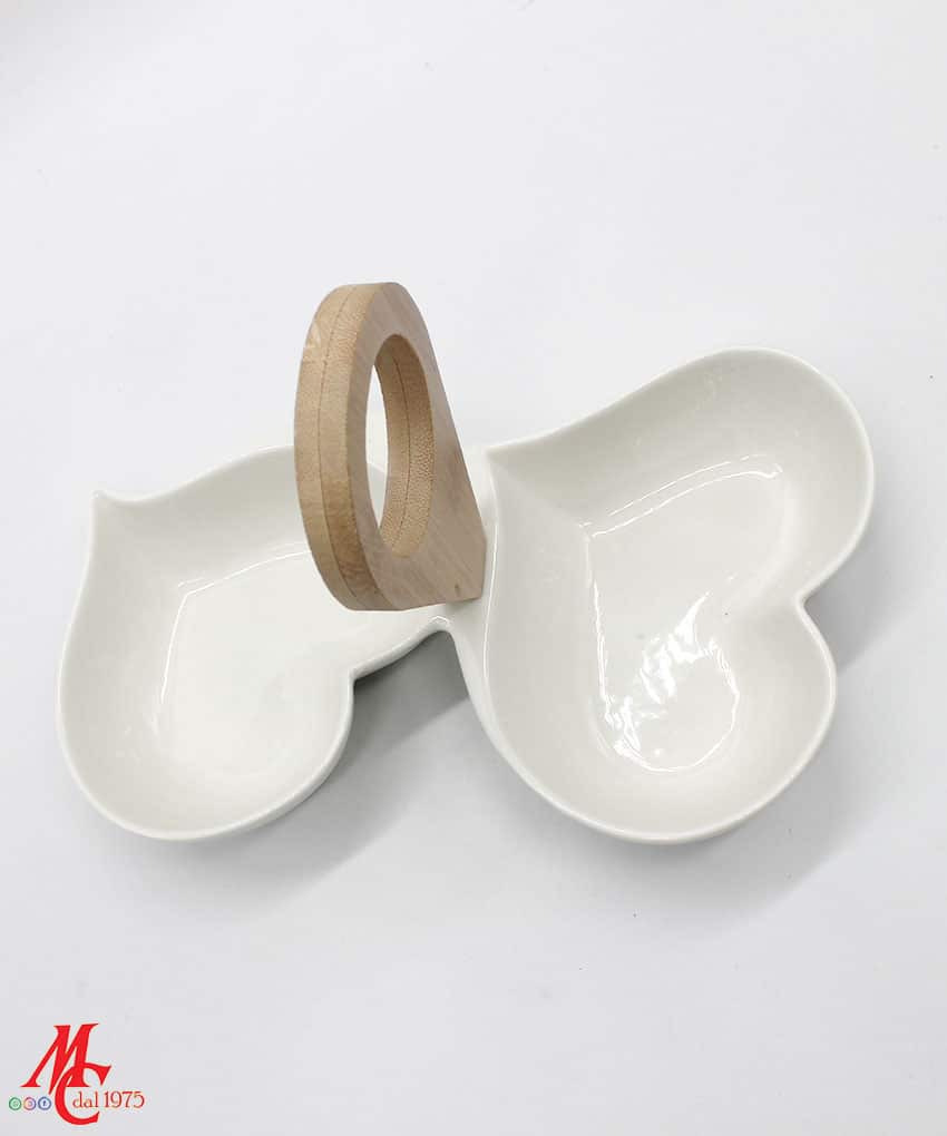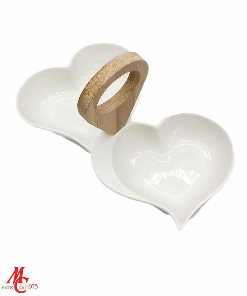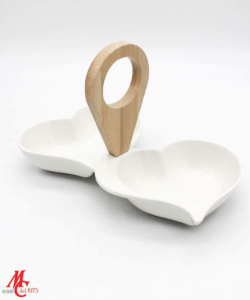 Bomboniera – Antipastiera Doppio Cuore – Porcellana e Bamboo