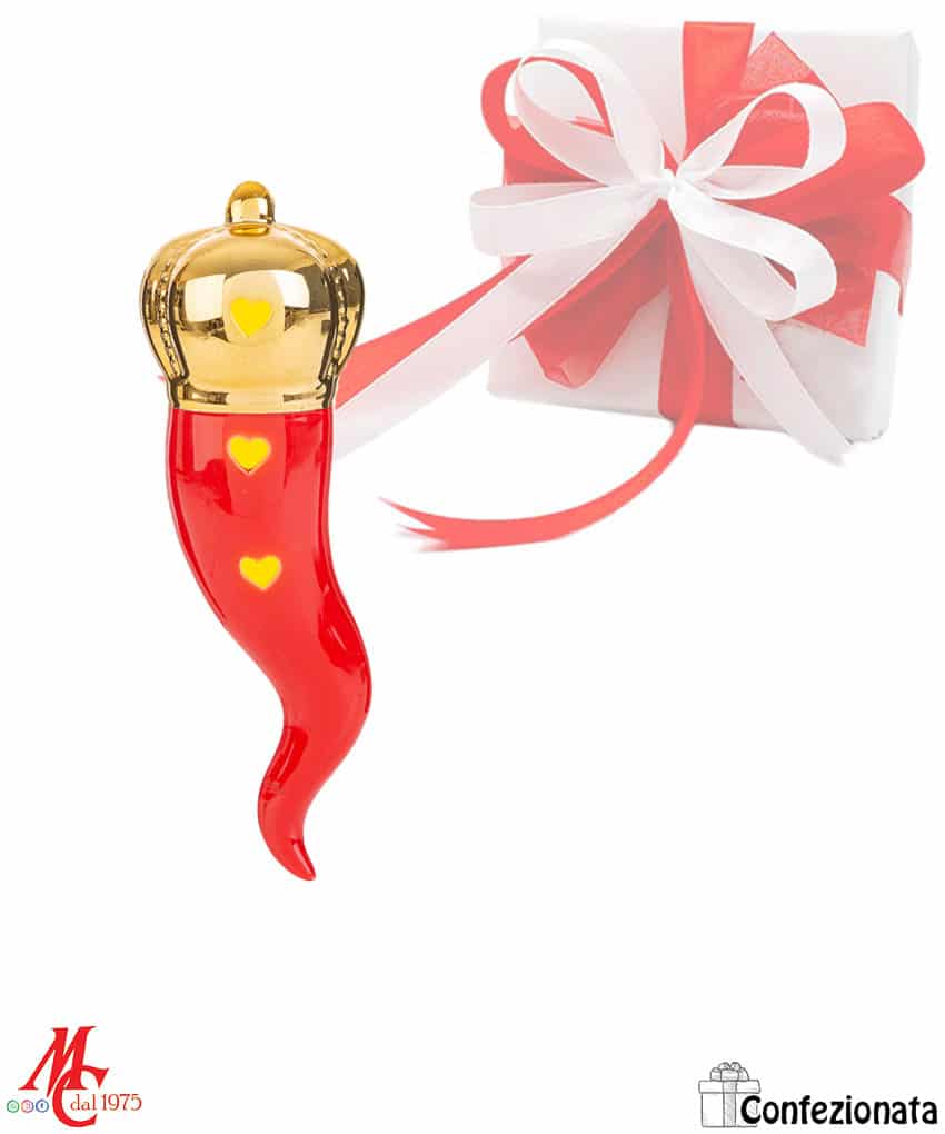 Bomboniera Appendino Corno Rosso Porcellana con Luce LED – Completa di Confezione