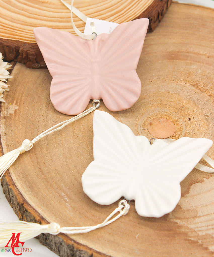 Aggiungi un tocco di eleganza e leggerezza ai tuoi eventi con l’appendino a forma di farfalla in porcellana, disponibile in due delicatissime varianti: bianco o rosa.