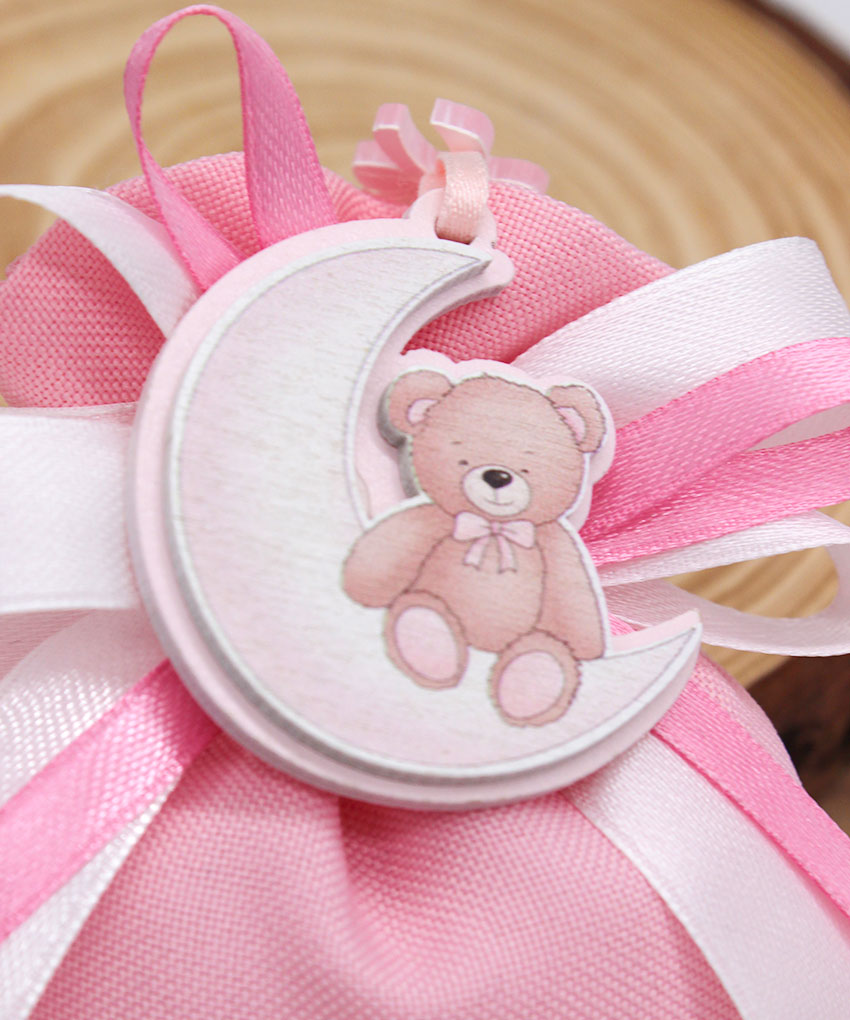 Bomboniera Appendino Luna Orsetto Rosa – Nascita e Battesimo | MC Bomboniere