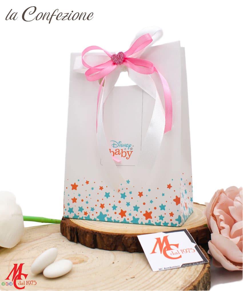- Confezione Elegante: Ogni bomboniera viene fornita in una confezione regalo completa di shopper Disney, rendendola pronta per essere donata e perfetta per sorprendere chi la riceve.