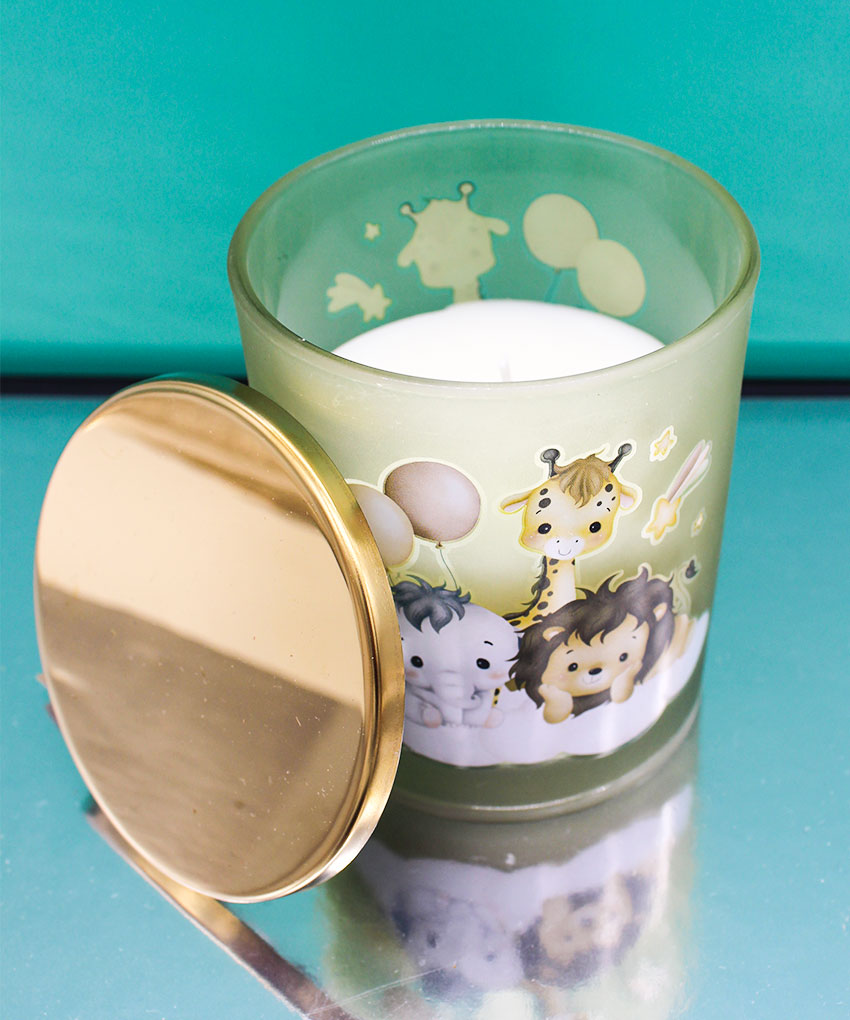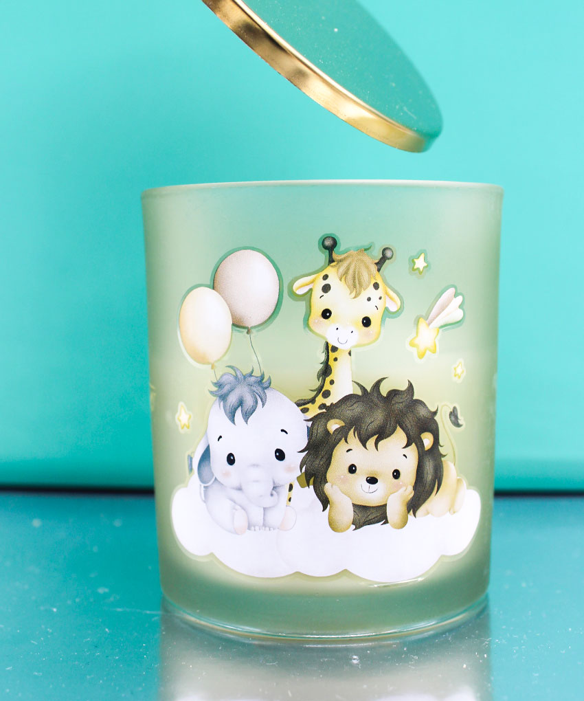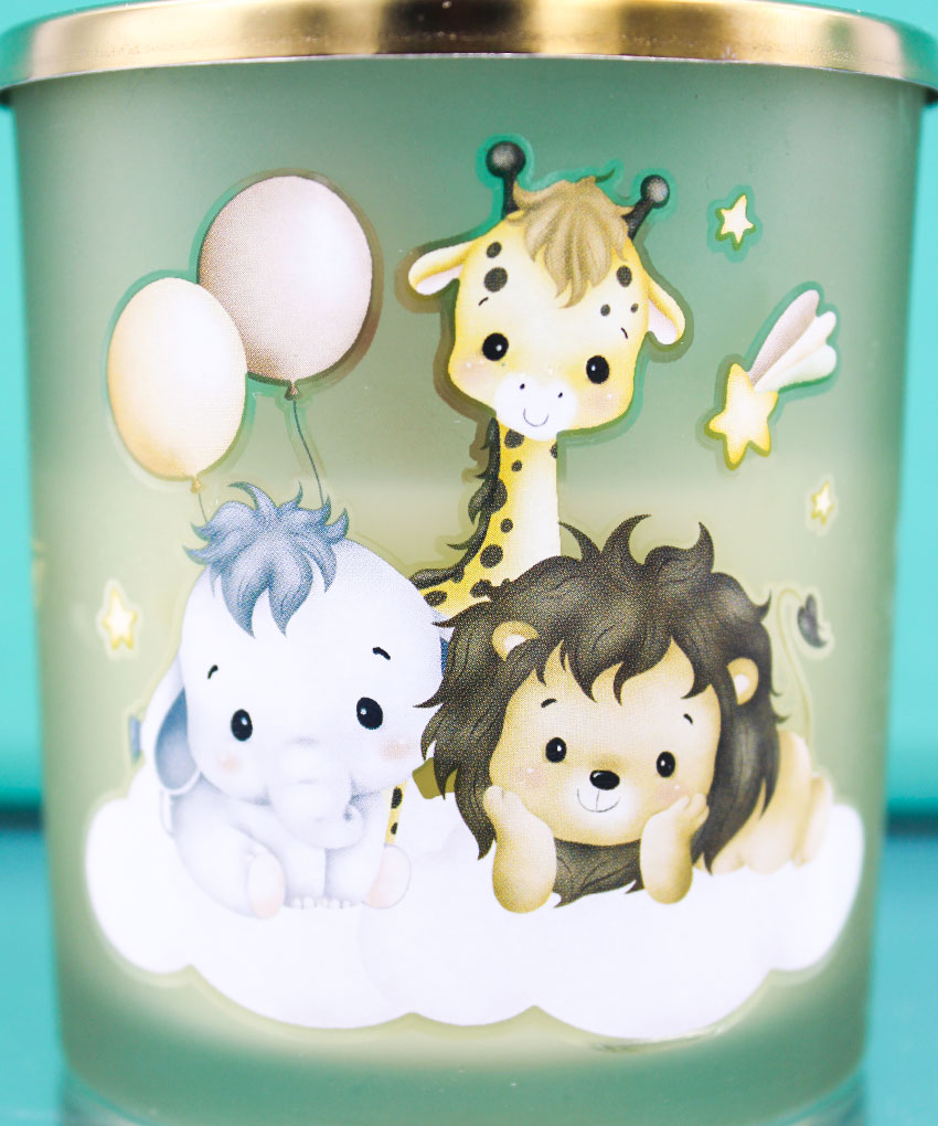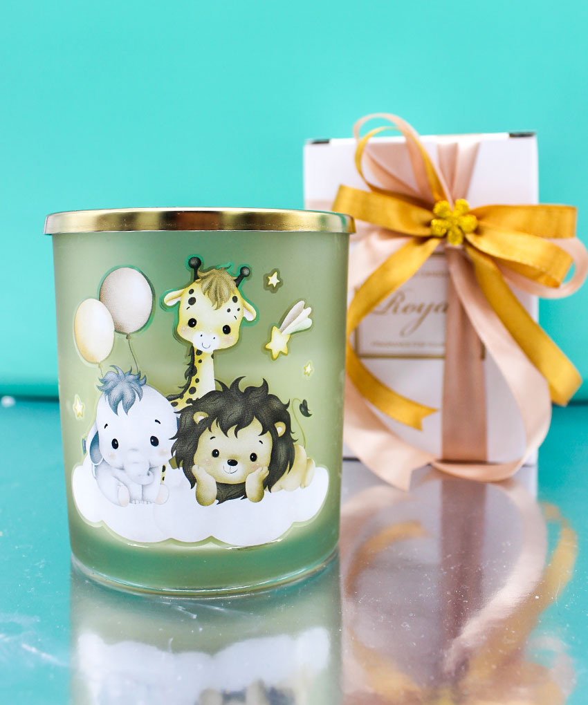Cerchi una bomboniera originale e dolcissima per il battesimo o il compleanno del tuo bambino? La nostra candela profumata a tema Savana è la scelta perfetta! Con una tenera illustrazione che raffigura un leone, un elefante e una giraffa adagiati su una morbida nuvola, questa bomboniera unisce eleganza e fantasia, regalando un ricordo unico ai tuoi ospiti.
