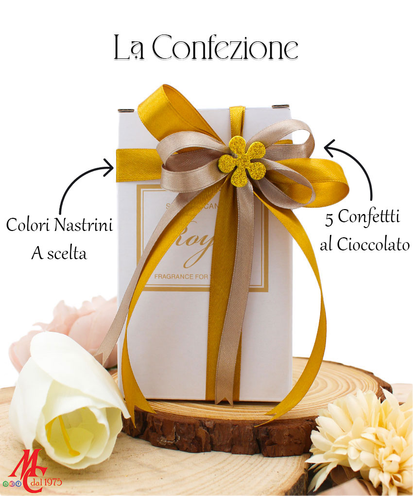 Acquistando questa bomboniera, riceverai gratuitamente una confezione regalo completa di: