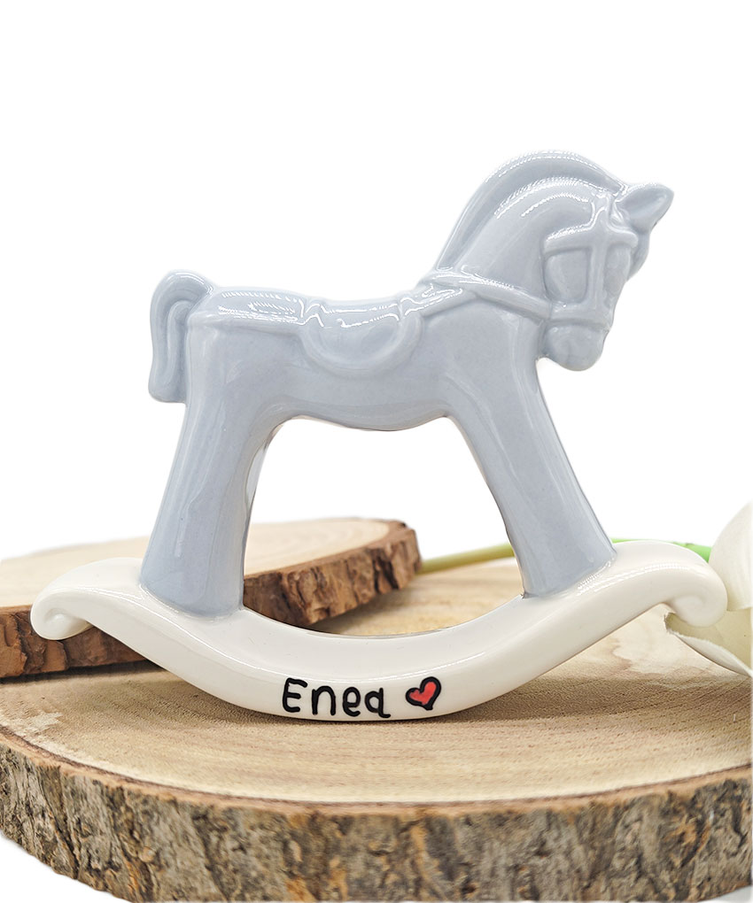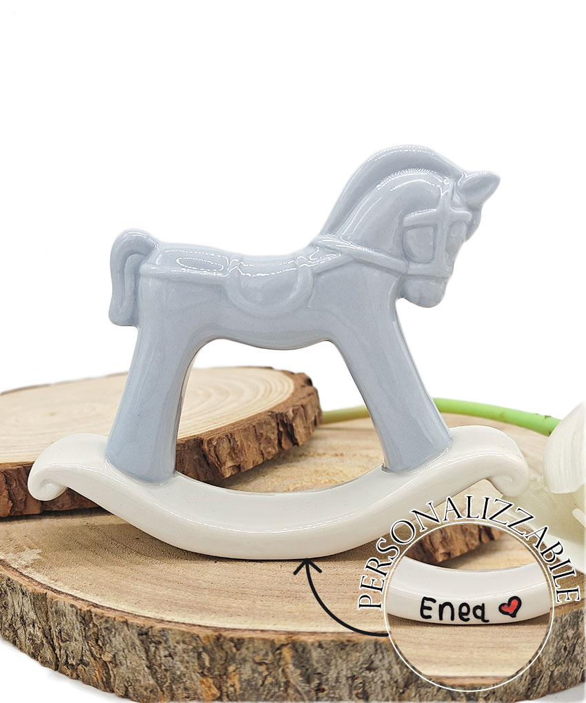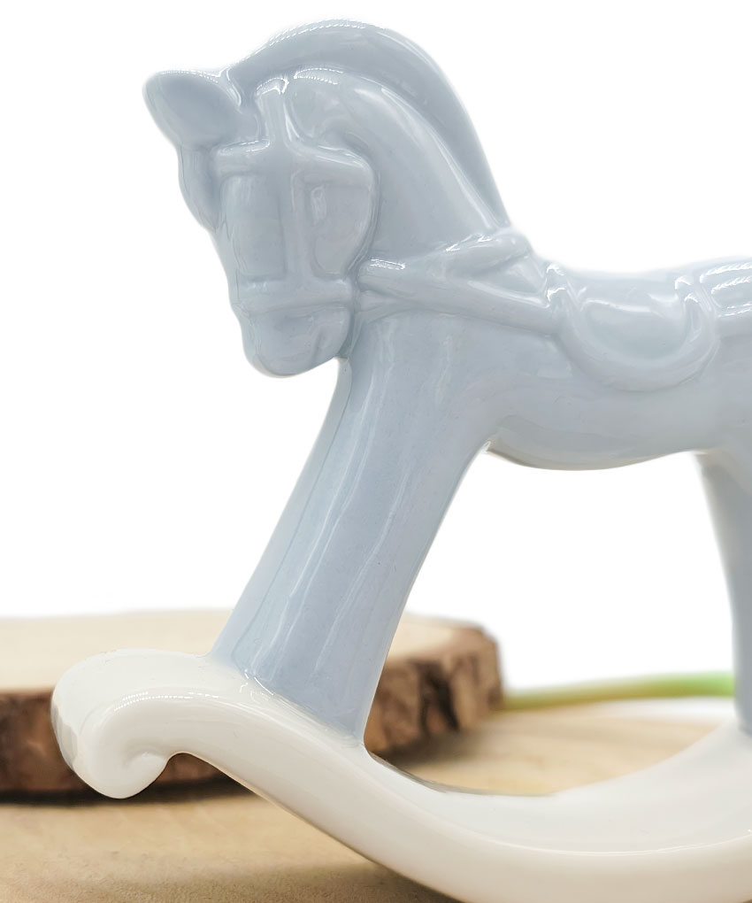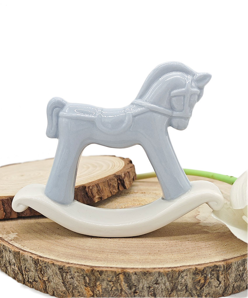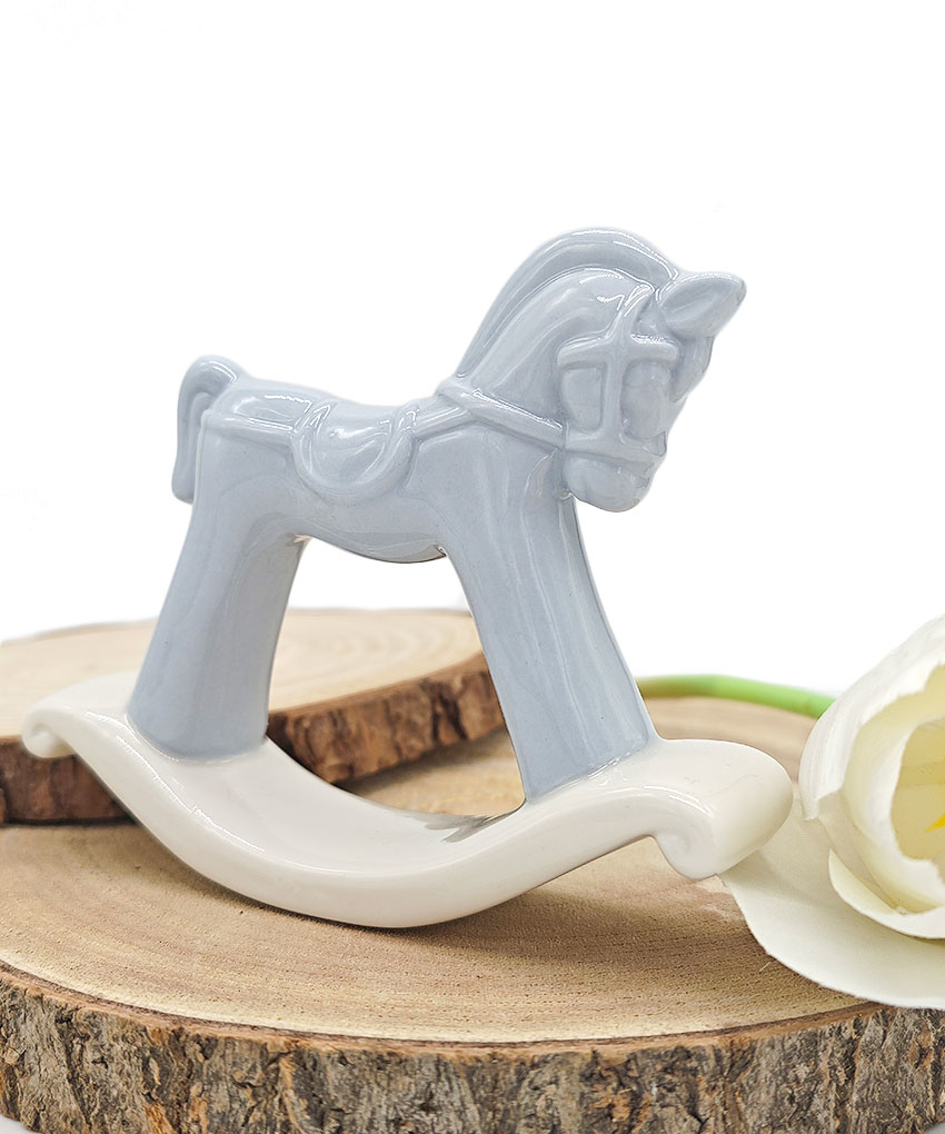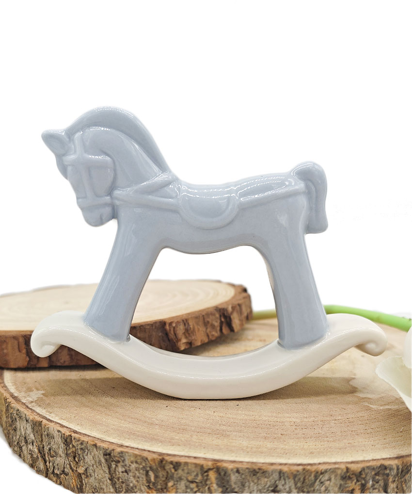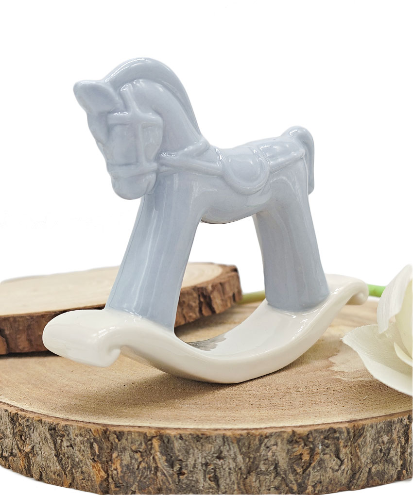 Bomboniera Cavalluccio a Dondolo Celeste in Porcellana Lucida – Eleganza e Dolcezza per il tuo Evento – Idea Regalo e Battesimo