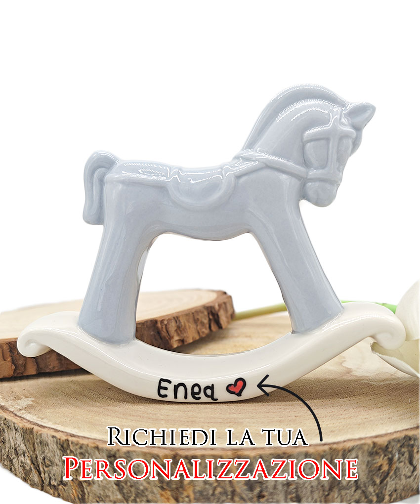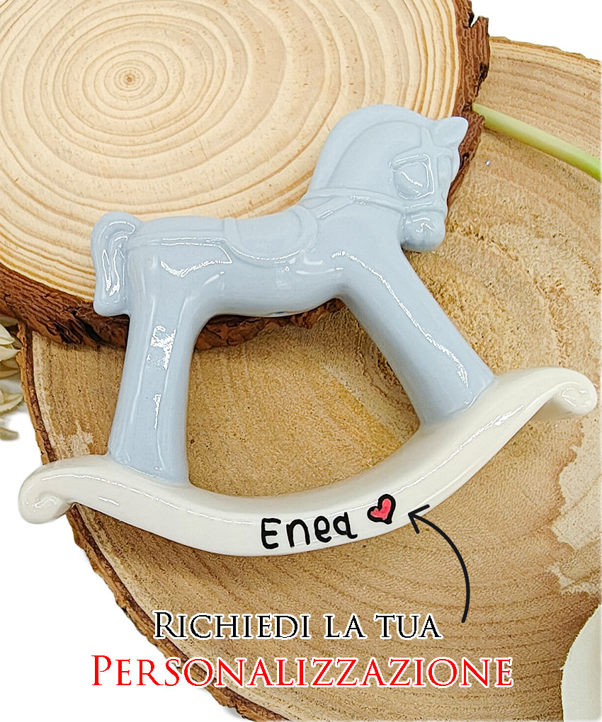 Bomboniera Cavalluccio a Dondolo Celeste in Porcellana Lucida – Eleganza e Dolcezza per il tuo Evento