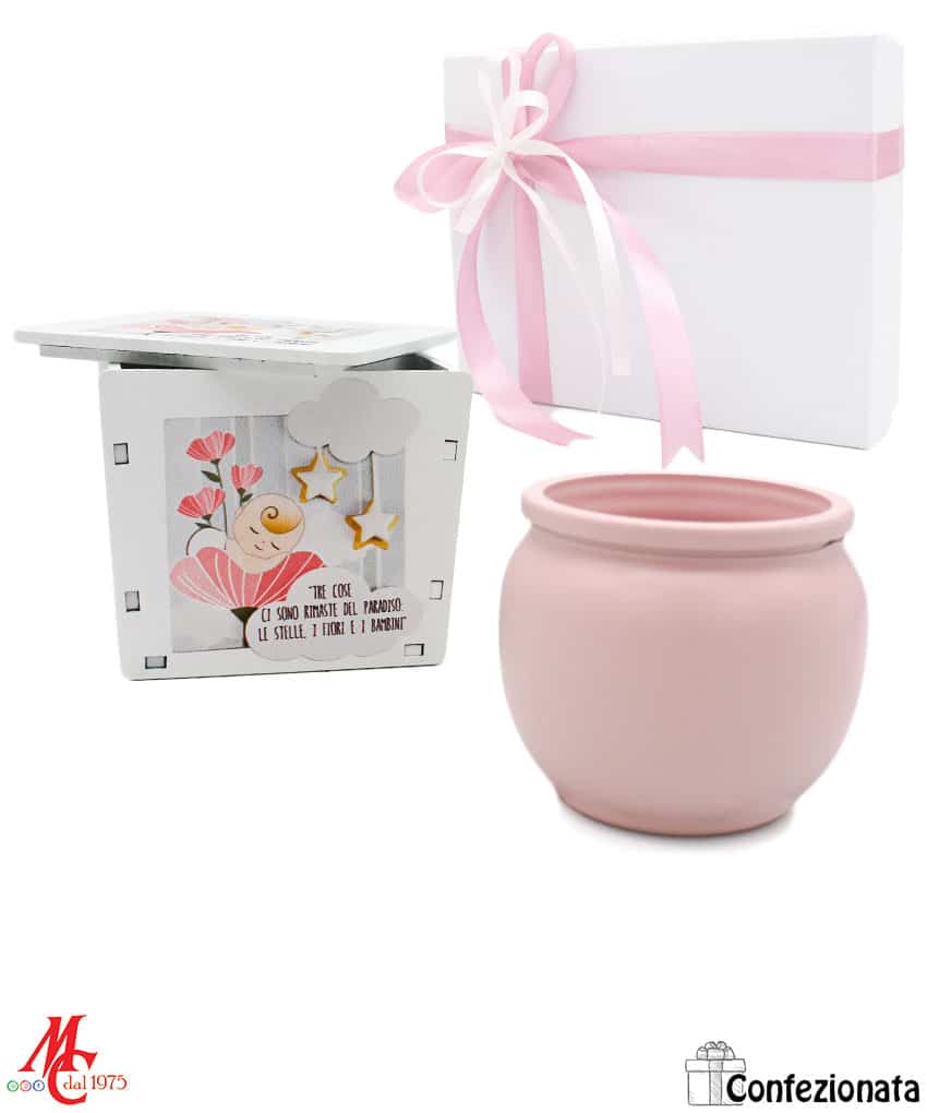 Fai una scelta che lascia un’impressione duratura con questa bomboniera candela profumata per battesimo Femminuccia, completa di custodia in legno decorata abbinata e confezione inclusa.