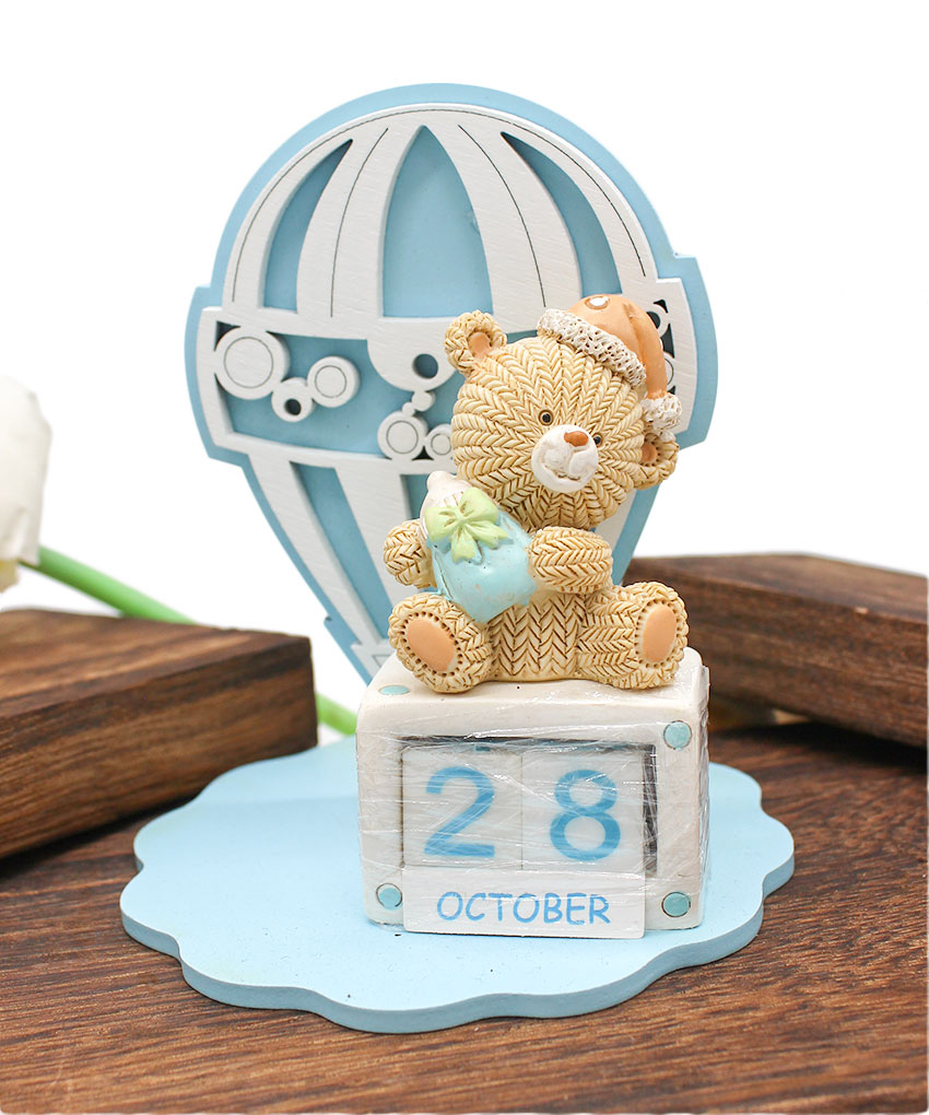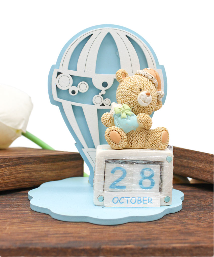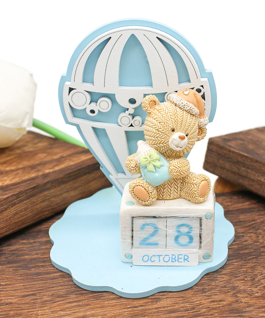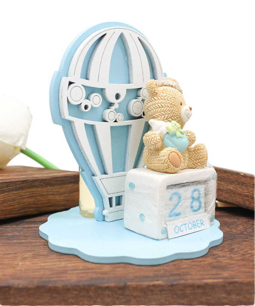 Bomboniera Battesimo Profumatore con Mongolfiera e Calendario Perpetuo Orsetto