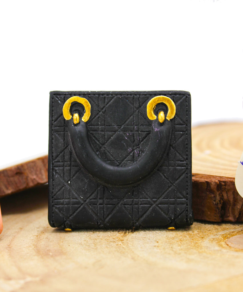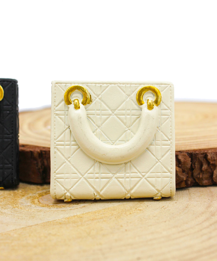 Realizzata in resina e disponibile in 3 colori assortiti, questa graziosa borsetta unisce stile e funzionalità grazie al pratico magnete applicato sul retro, ideale per essere utilizzata su superfici metalliche come frigoriferi o lavagne magnetiche.