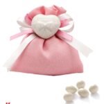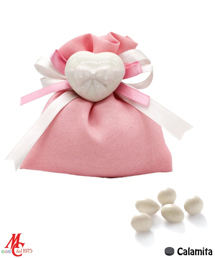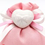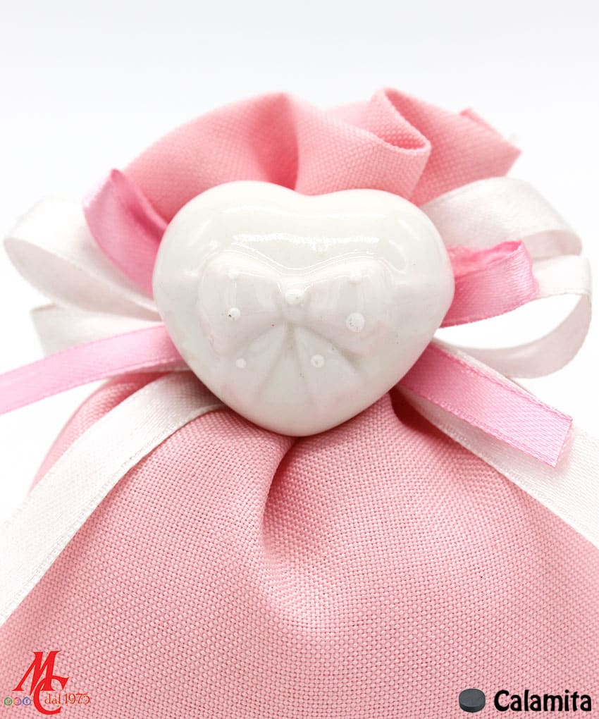 Bomboniera/Bustina Calamita Cuore porcellana fiocco Rosa