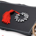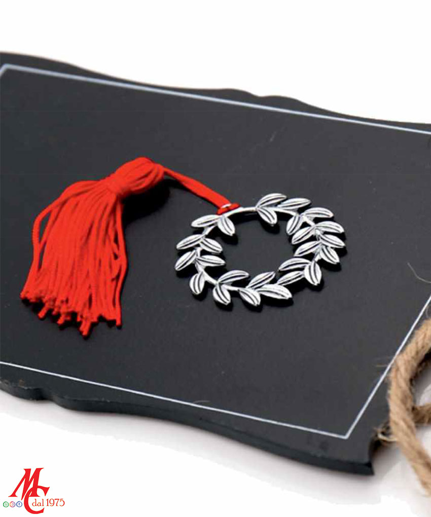 Il ciondolo rappresenta una corona di alloro, un antico simbolo di vittoria e successo. Le foglie sono meticolosamente sagomate per un effetto realistico ed elegante. Questo ciondolo non solo celebra il successo accademico, ma può essere indossato come un raffinato pendente.