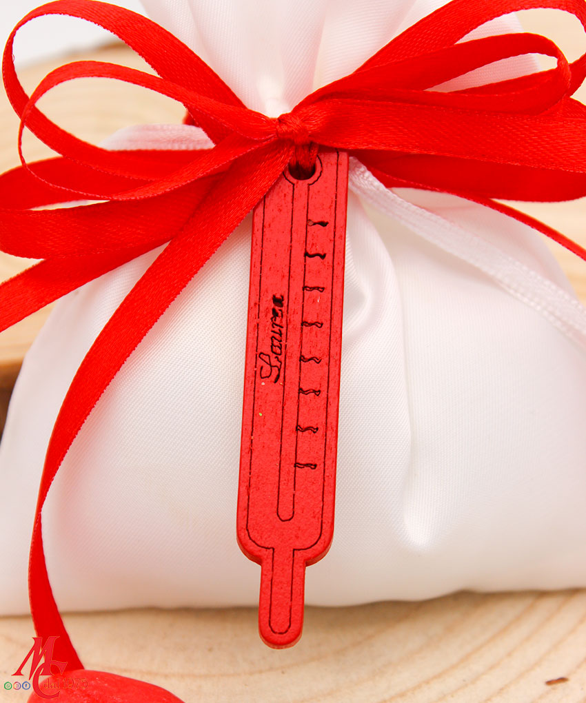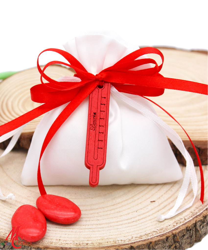 Bomboniera per Laurea in Infermieristica: Sacchettino Bianco con Termometro in Legno