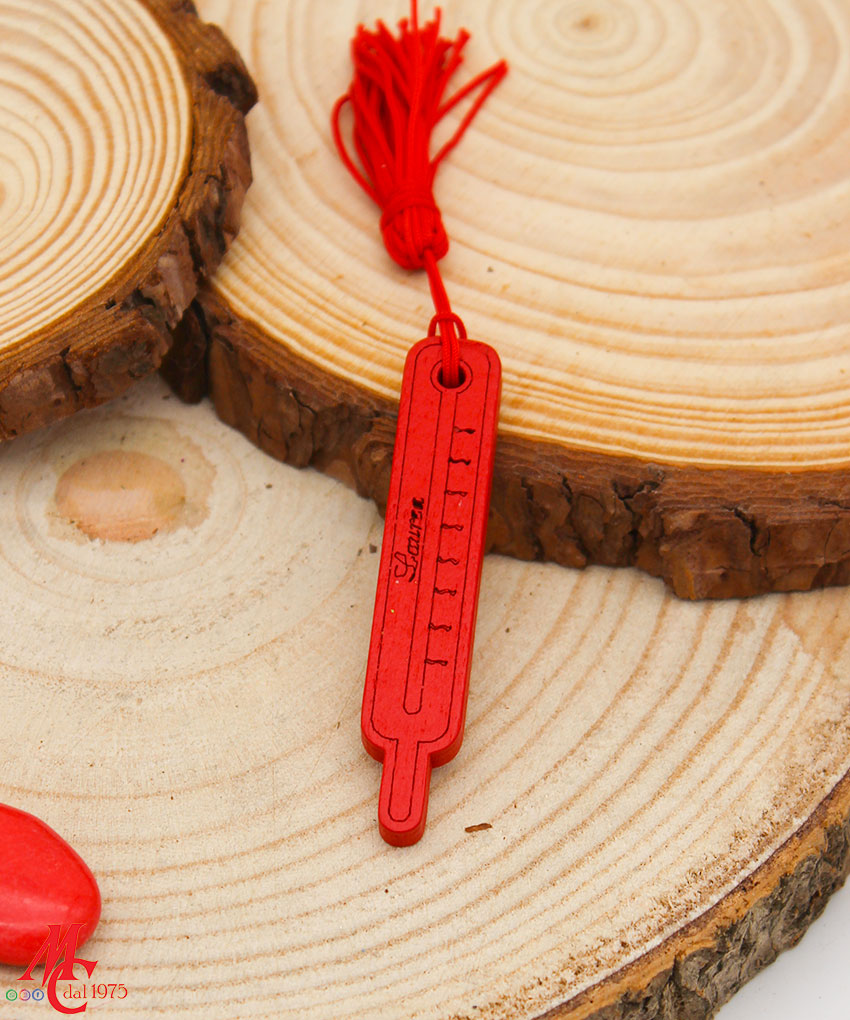 - Decorazione: Termometro in legno intagliato al laser e nappina color rosso