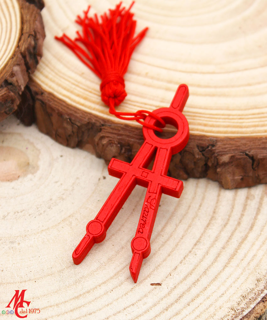 - Decorazione: Compasso in legno intagliato al laser e nappina color rosso