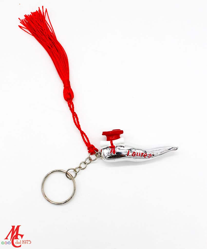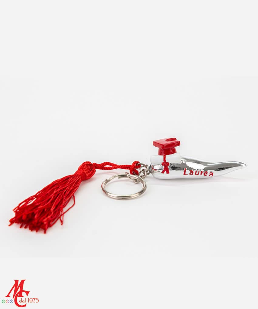 Bomboniera/Bustina Laurea – Portachiavi Corno Argento