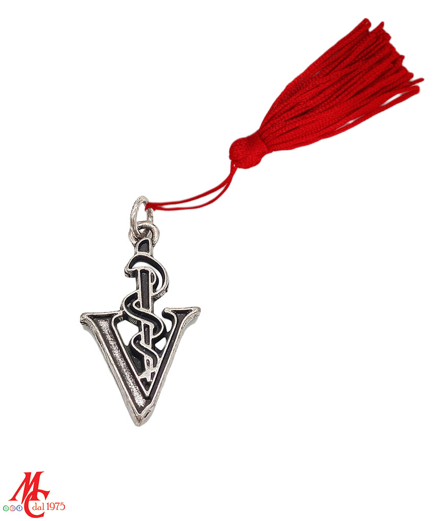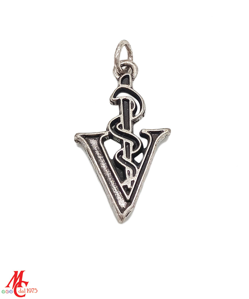 Bomboniere Laurea Veterinaria Ciondolo Caduceo con V in Argento