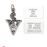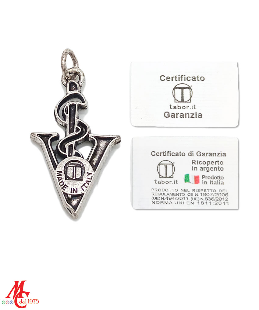 Il ciondolo raffigura il Caduceo con la “V”, simbolo della professione veterinaria, ed è realizzato con cura nei dettagli. L’argento che lo ricopre conferisce un tocco di eleganza e lucentezza, rendendolo un dono prezioso per chiunque abbia conseguito la laurea in Veterinaria.