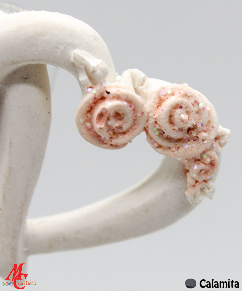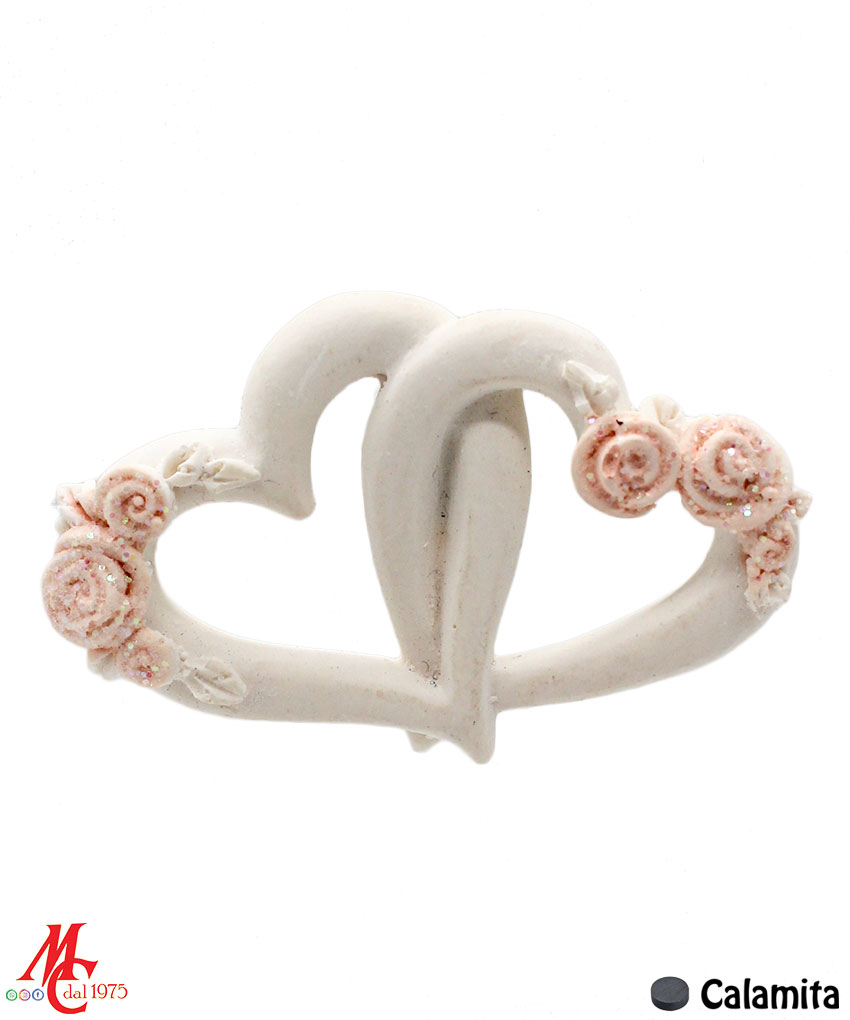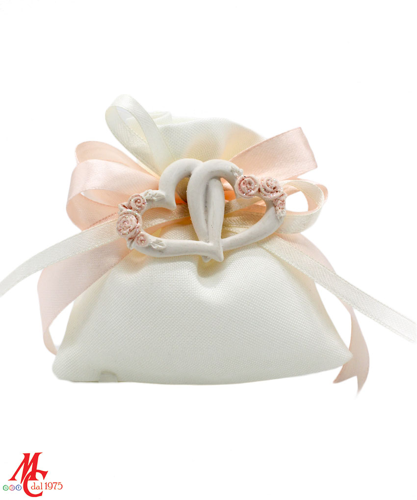 - Design: Sacchettino con applicazione magnete cuori intrecciati e fiori rosa