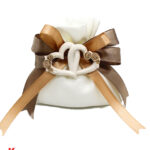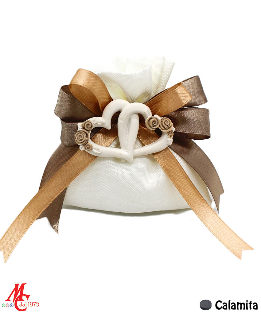 • Design: Sacchettino con applicazione magnete cuori intrecciati e fiori Tortora