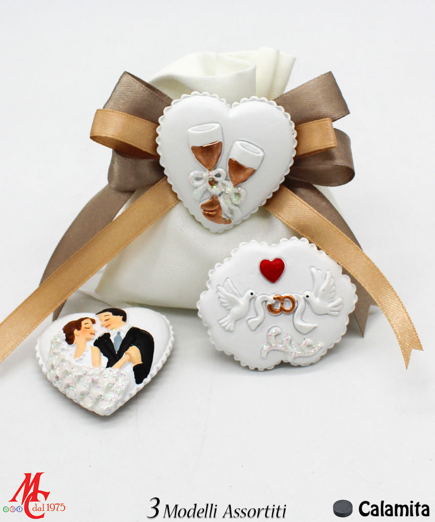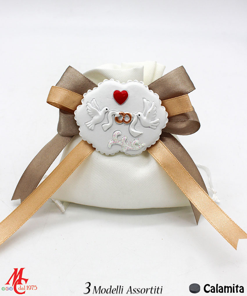 - Design: Sacchettino con applicazioni di 3 magneti assortiti in tema matrimonio