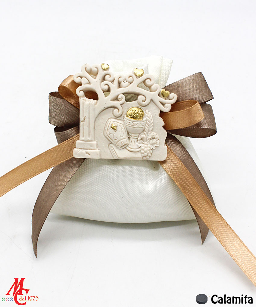 - Design: Sacchettino con applicazione magnete Comunione e Cresima con albero della vita