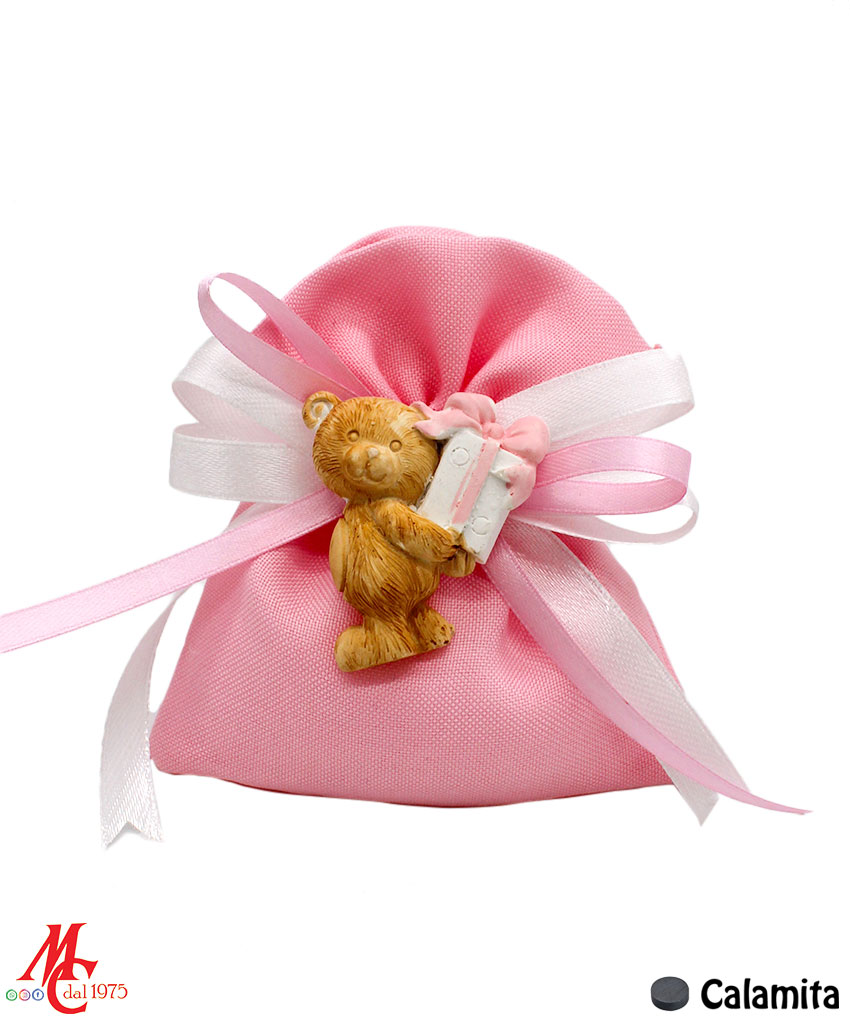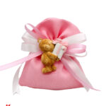 Bomboniera / Bustina: Sacchettino con Applicazione Magnete Orsetto con Regalo Rosa