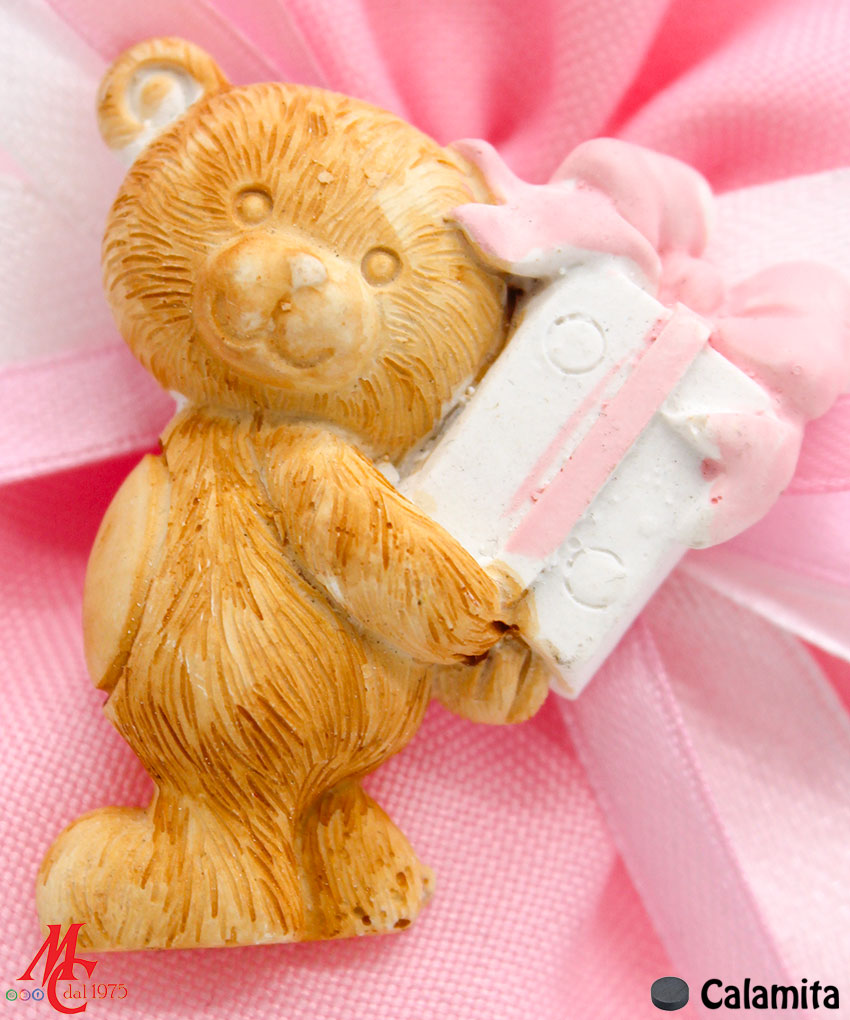 Ogni sacchettino è decorato con un adorabile magnete a forma di orsetto che tiene un regalo, perfetto per festeggiare i primi momenti speciali del tuo bambino. Il colore Rosa rende questa bomboniera particolarmente adatta per eventi legati a bambini, come battesimi e compleanni.