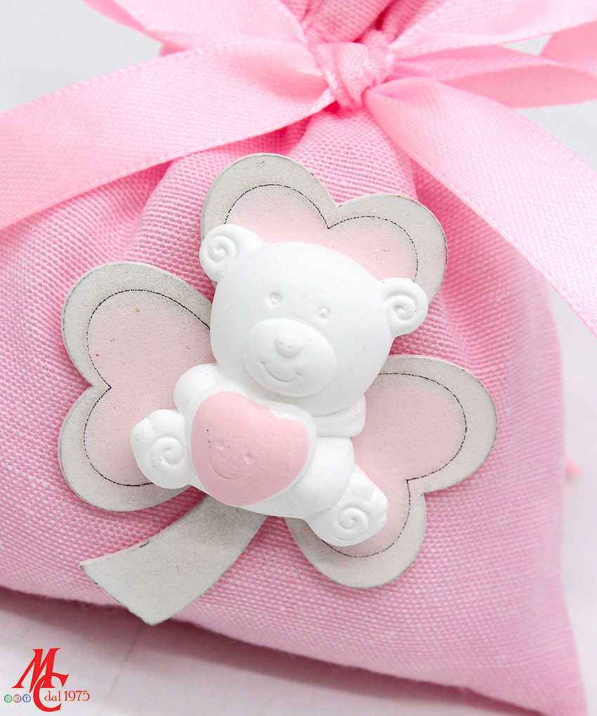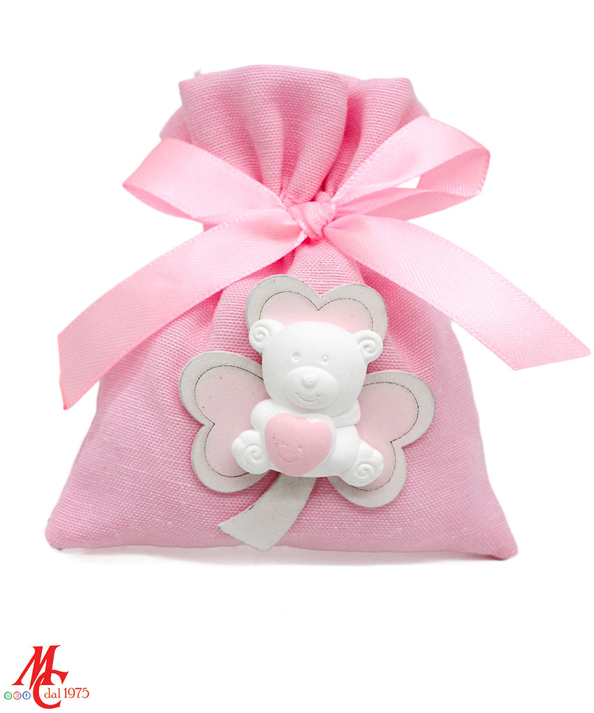 Bomboniera / Bustina: Sacchettino con Applicazione Orsetto Rosa