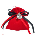 Il sacchetto di colore rosso, elegante e raffinato, contiene il ciondolo musicale a scelta tra una vasta gamma di strumenti, ed è accompagnato da nastrini coordinati e confetti al cioccolato. Le dimensioni del sacchetto, 10 cm x 12 cm, lo rendono una bomboniera perfetta e compatta, che può essere facilmente personalizzata per eventi musicali o tematici.