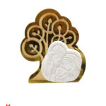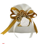 Il sacchettino è realizzato in tessuto pregiato, garantendo una sensazione al tatto piacevole e una presentazione raffinata. L’applicazione magnete raffigurante la Sacra Famiglia con l’Albero della Vita è dettagliata in colori oro e bianco, simboleggiando purezza, protezione e prosperità.