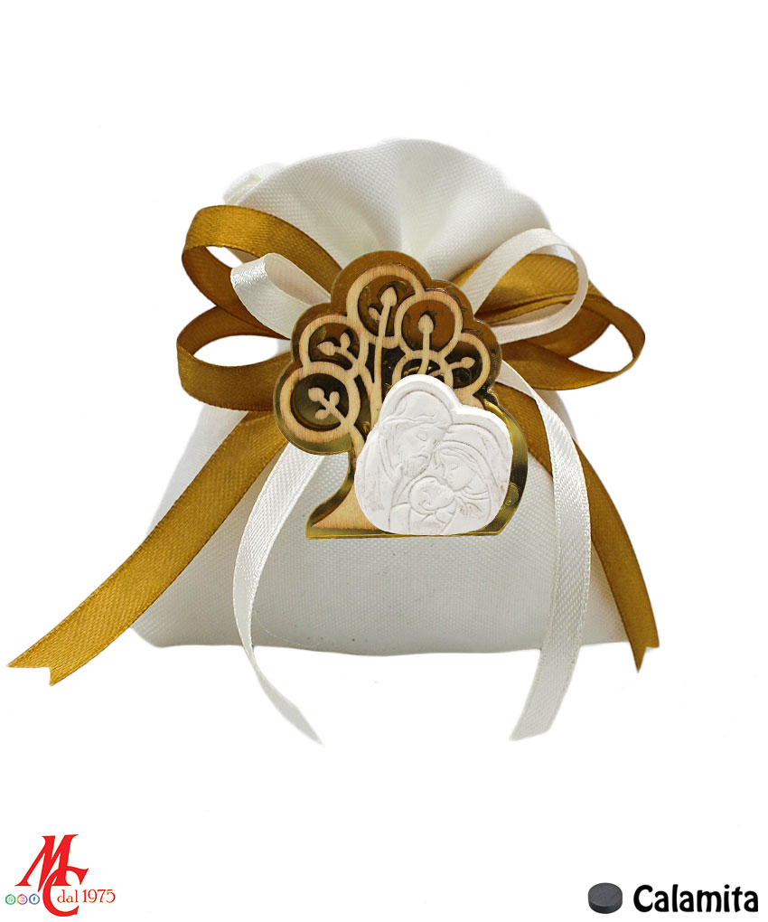 • Design: Sacchettino con applicazione magnete sacra famiglia con albero della vita