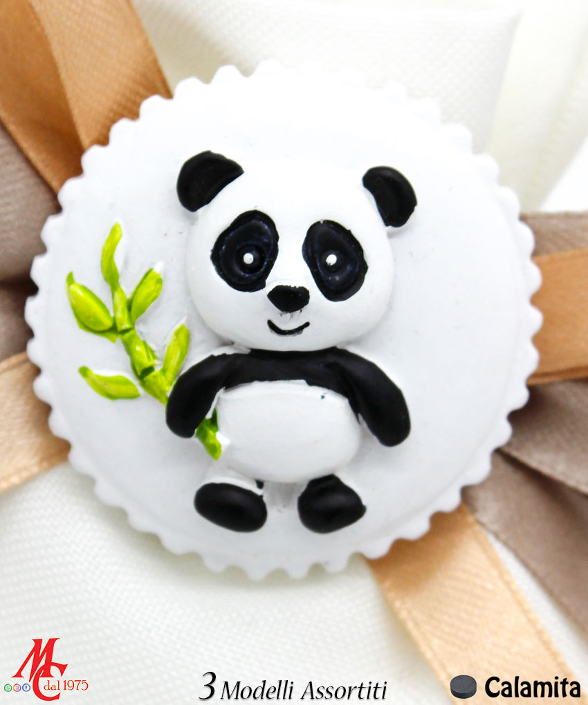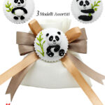 Ogni sacchettino è decorato con un adorabile magnete Baby Panda, perfetto per un tema giungla. I magneti sono disponibili in tre modelli assortiti, ciascuno raffigurante un Baby Panda in pose diverse, aggiungendo un tocco giocoso e accattivante alla bomboniera.