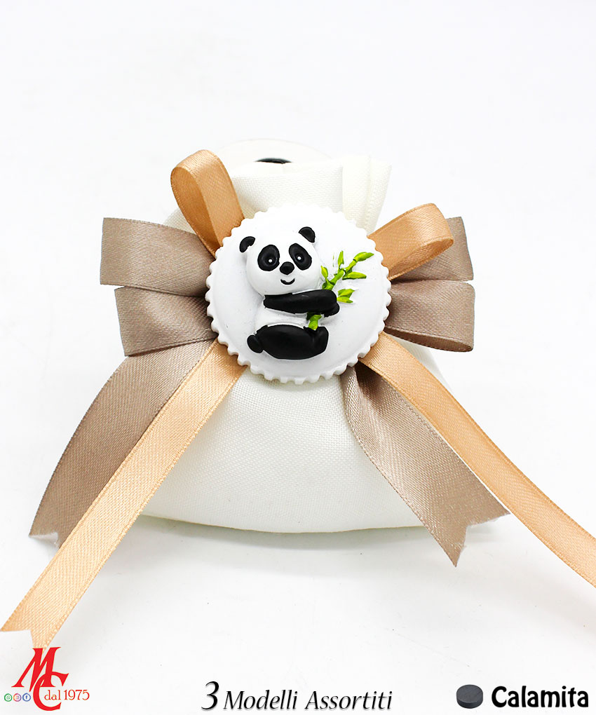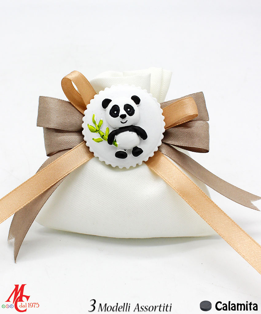 - Design: Sacchettino con applicazione magnete Baby Panda, disponibile in 3 modelli assortiti