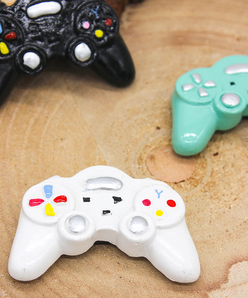 Calamita a forma di joystick in resina, disponibile in 3 colori assortiti. Perfetta come bomboniera per comunione o compleanno.
