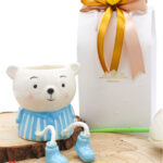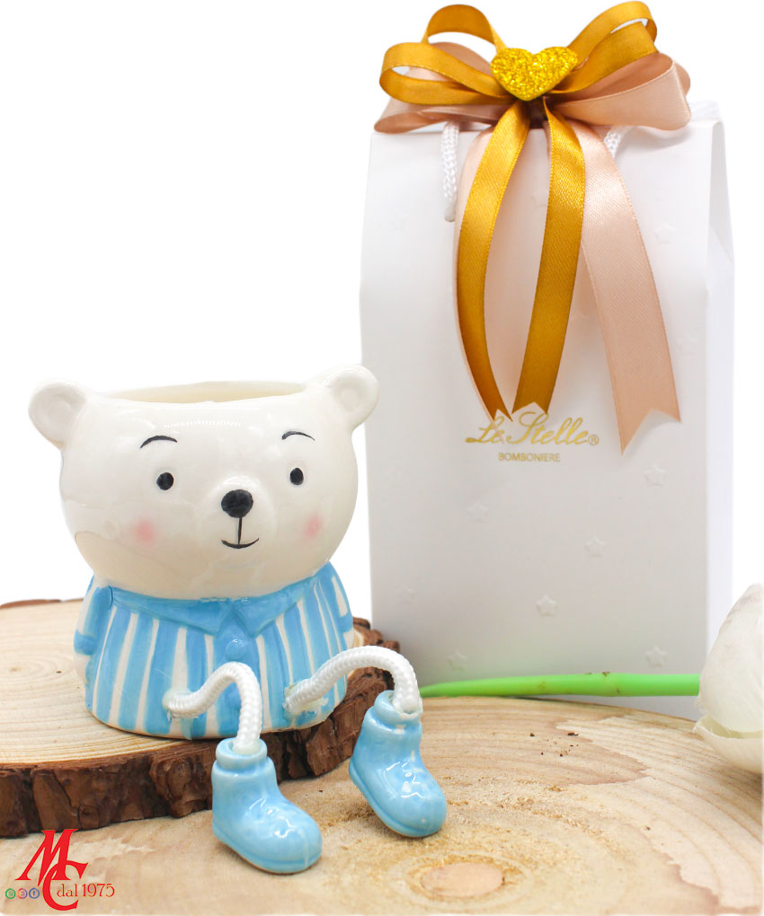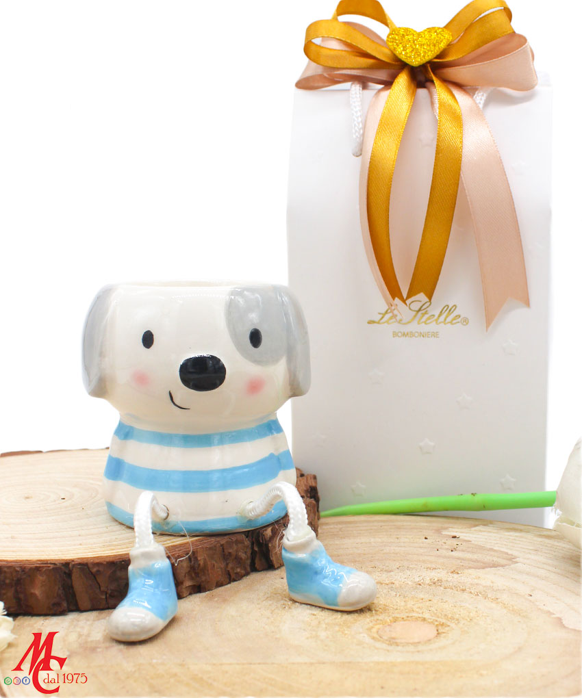 Bomboniera Candela Animali in Porcellana Celeste – Cagnolino o Orsetto con Confezione Omaggio