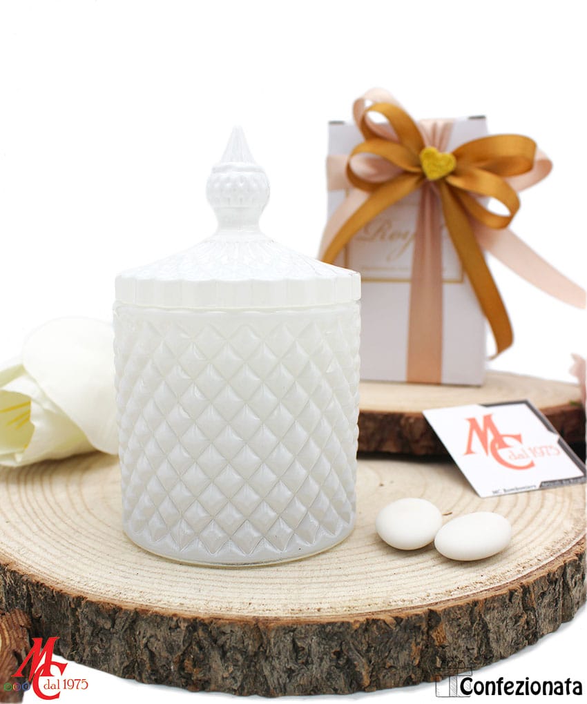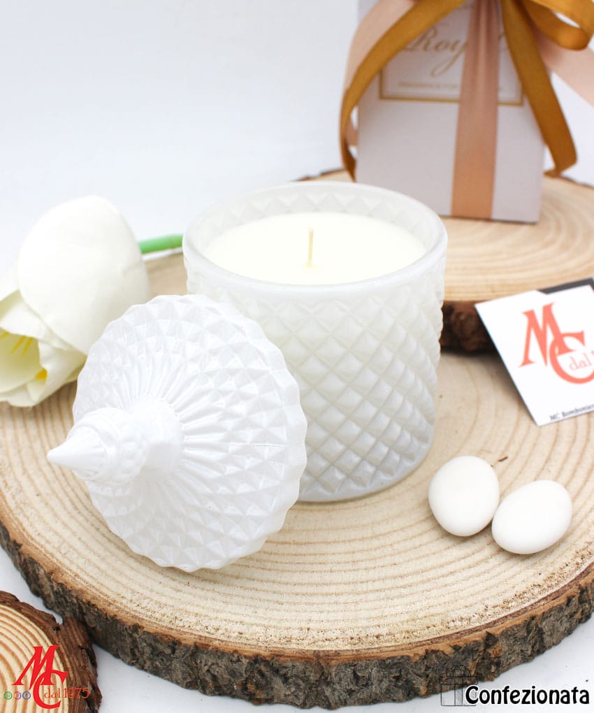 - Modello: Bomboniera Candela 7×11 cm – Colore Bianca, Completa di Confezione