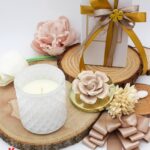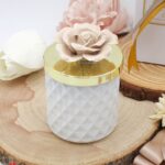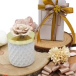 Recensisci per primo “Bomboniera Candela Bianca Con Fiore in Porcellana Tortora – Completa di Confezione”