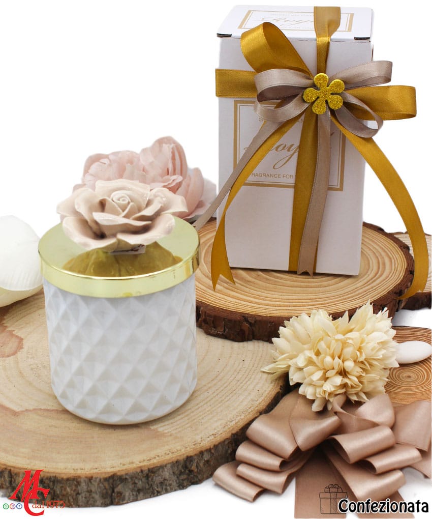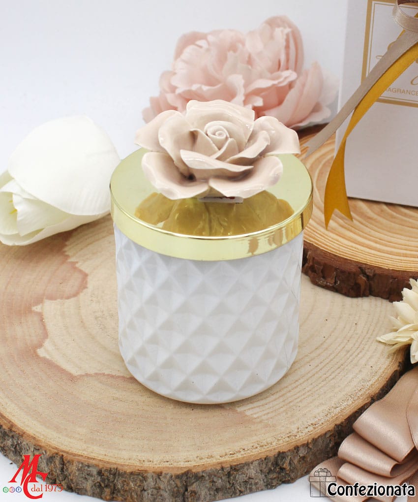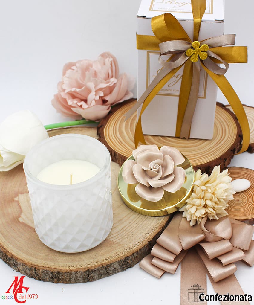 • Modello: Bomboniera Candela con Fiore in Porcellana – Completa di Confezione