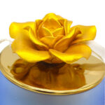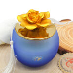 Se stai cercando una bomboniera matrimonio elegante e raffinata, questa candela profumata con contenitore sferico in vetro è la scelta perfetta. Il suo tappo è impreziosito da una splendida rosa in porcellana color oro, che aggiunge un tocco di lusso e stile. Ideale per matrimoni, anniversari, battesimi, comunioni e cresime, è un ricordo speciale da donare ai tuoi ospiti.