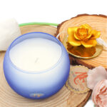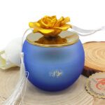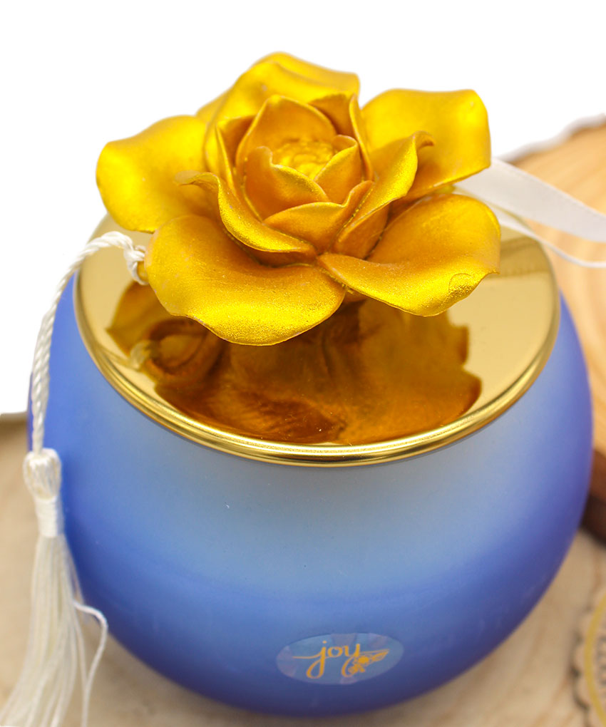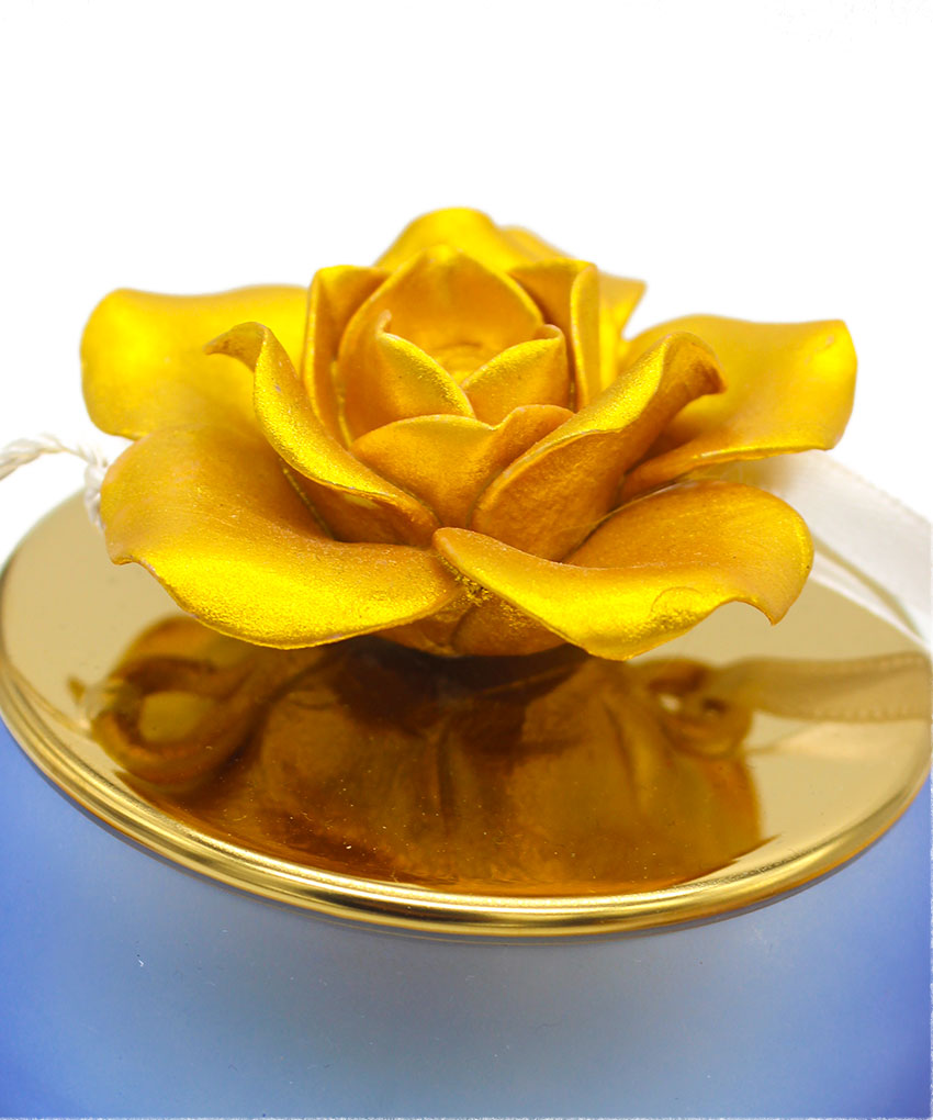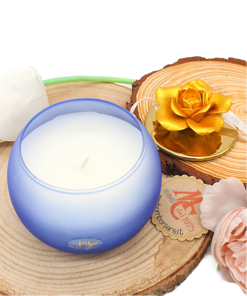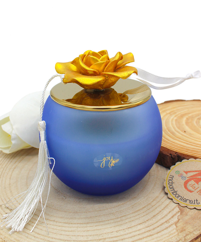 Bomboniera Matrimonio Candela Blu con Contenitore Sferico e Fiore in Porcellana Oro ✨